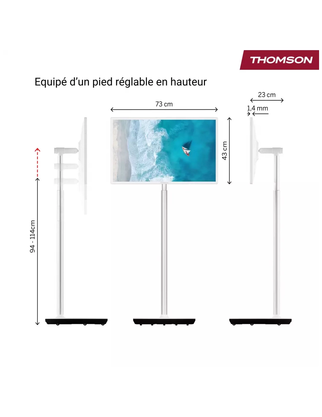| Dimensions avec pied (L x H x P en cm) | 73.4 x 133.2 x 42.6 |