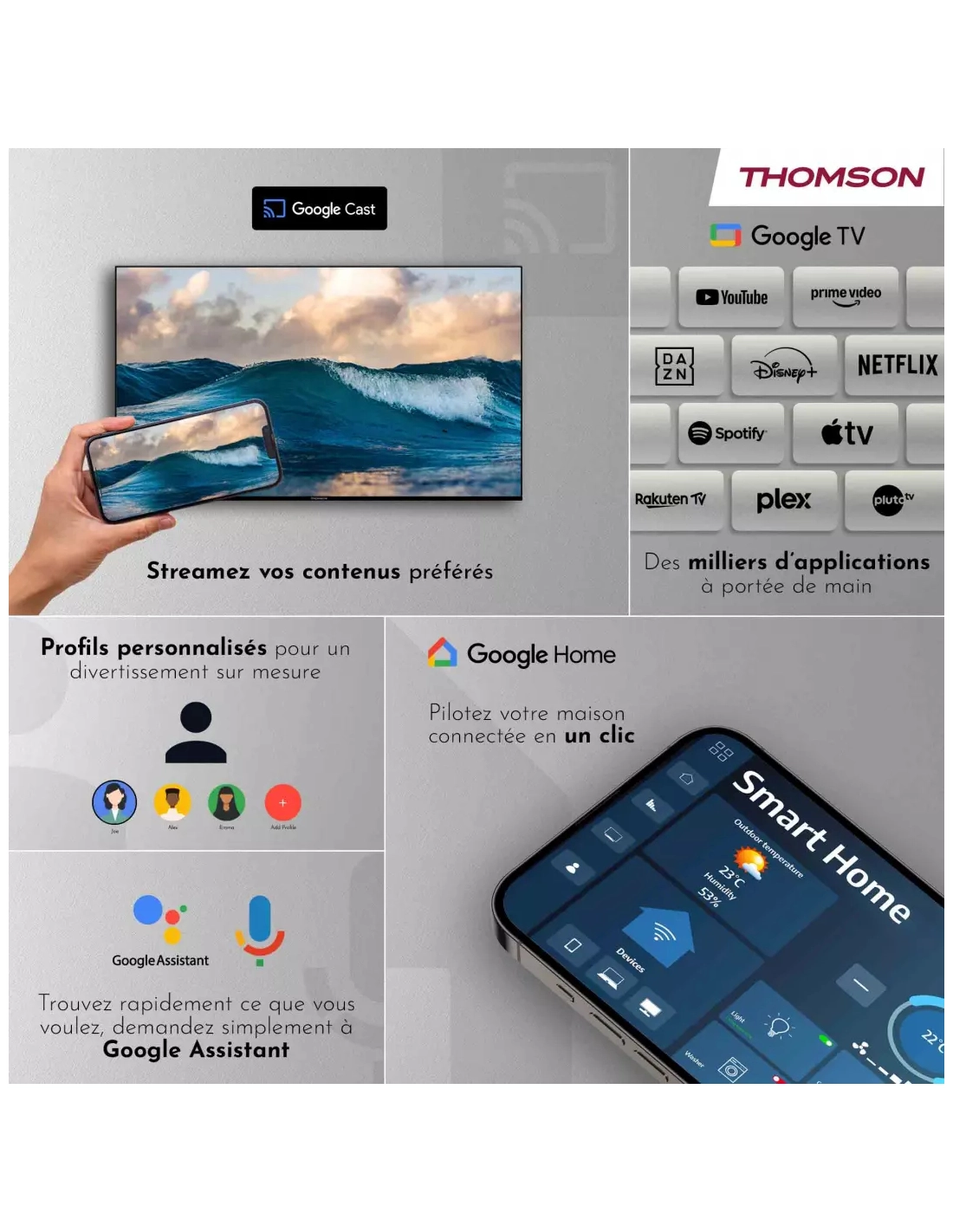 | Fonction(s) spéciale(s) Smart TV | google Play Store, Google Cast |