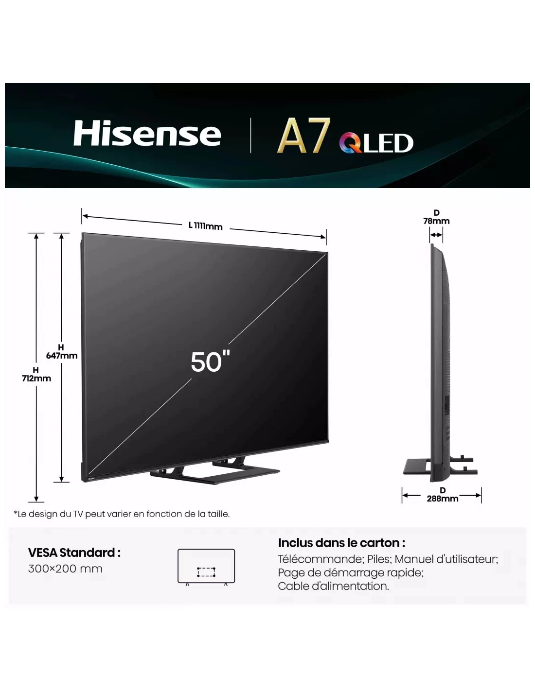 | Taille de l'écran (pouces) | 50'' |