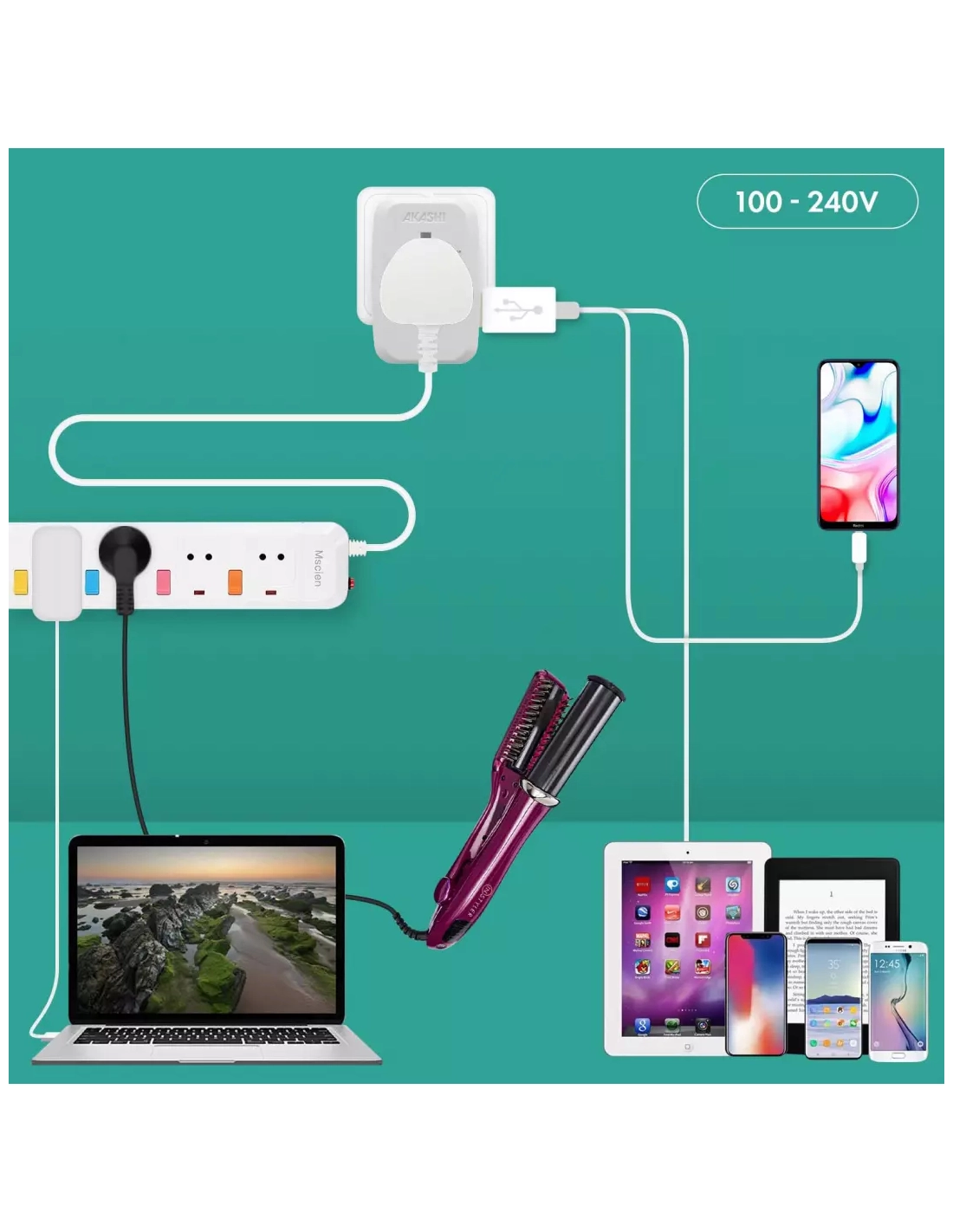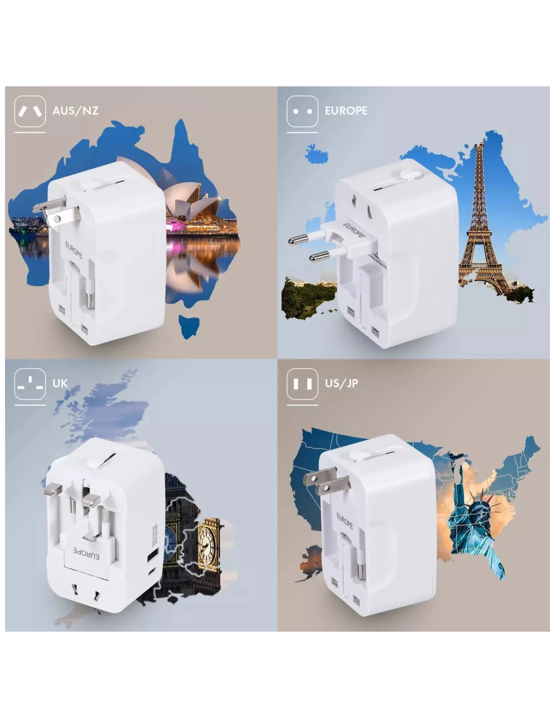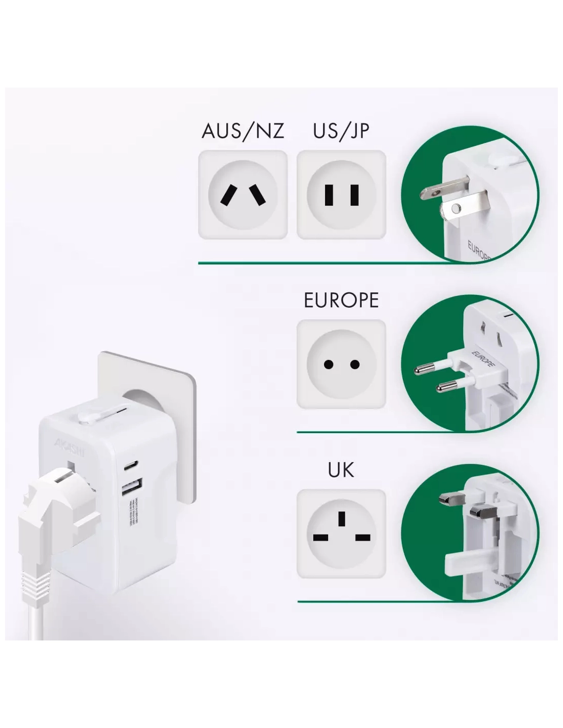 c/sect/univ 150pays usb-c/usb 15w blanc - akashi