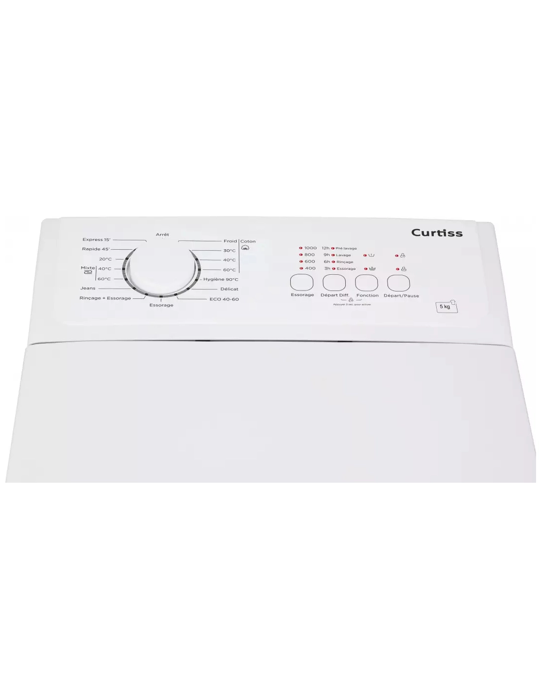 | Programmes spéciaux | Express 15', 20°C, Rinçage + essorage, 30°C, 40°C, 60°C, Hygiène 90°C |