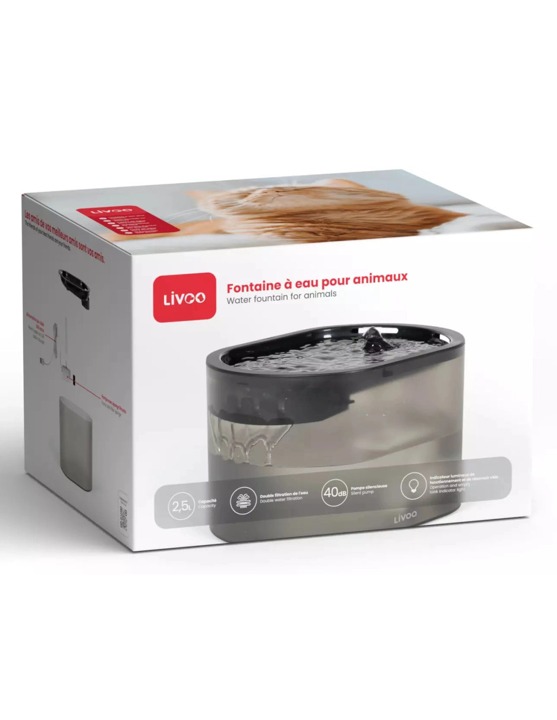fontaine eau.2,5l.led.5w.filtration. - livoo
