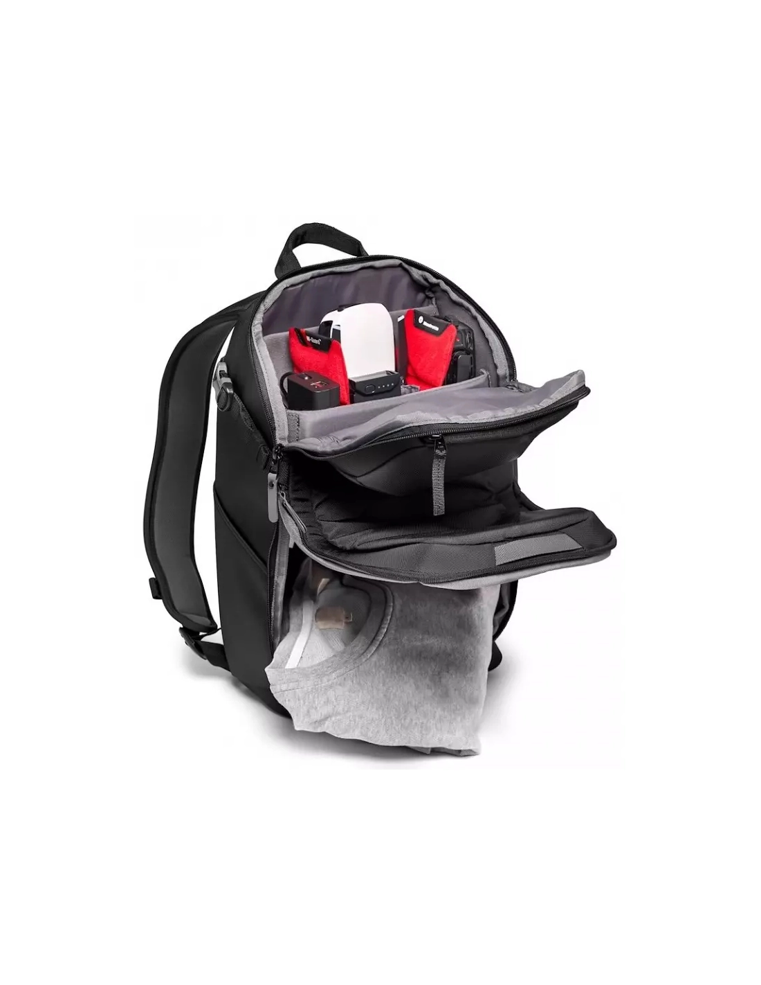 | Equipements | Compartiment photo en haut et effets personnels en bas, Compartiment rembourré pour ordinateur portable 13'', Fixation latérale pour trépied compact type GorillaPod |