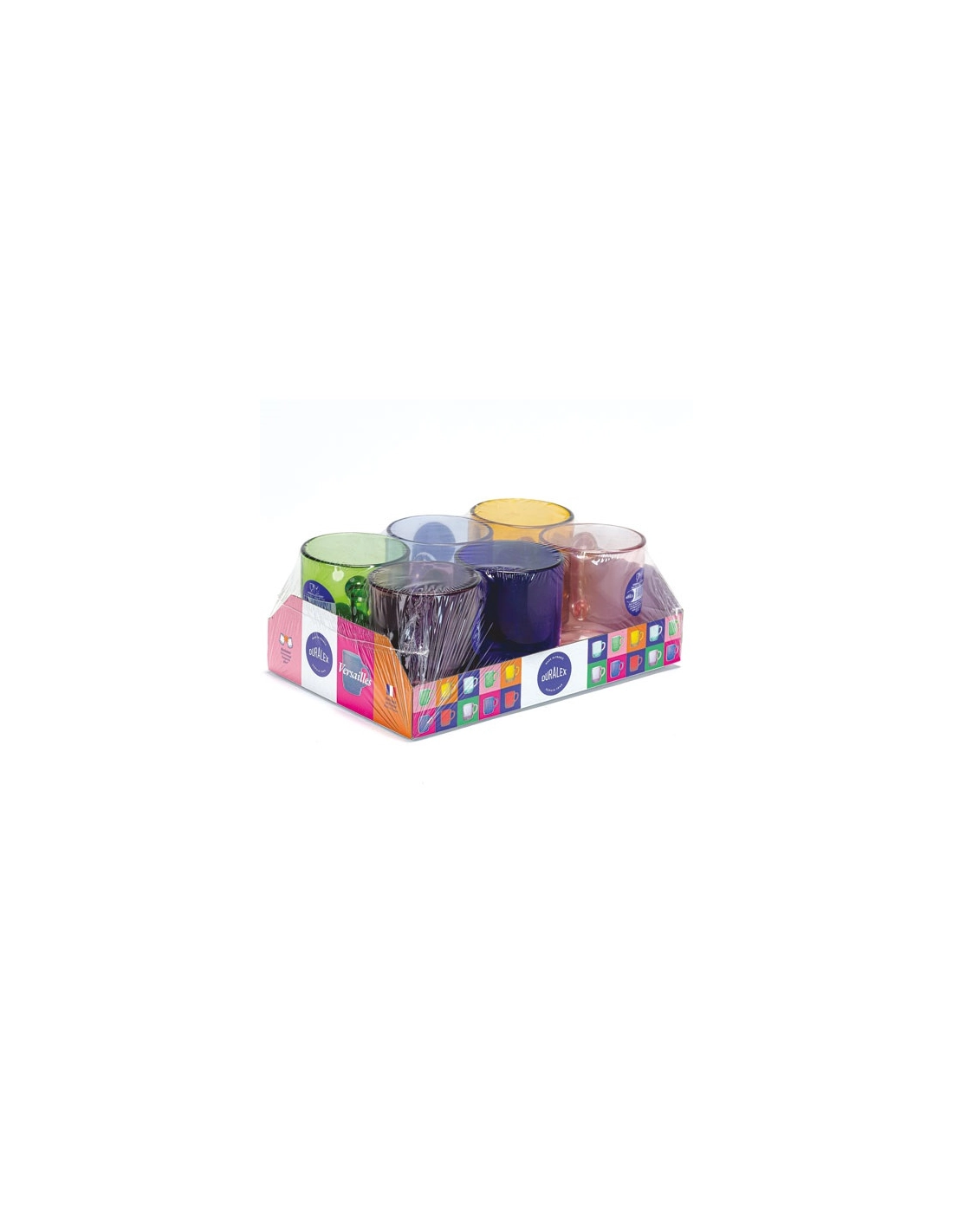 Lot 6 mugs 26 cl Assortis - Versailles - Avec son design élégant, ce mug vous permettra de faire de toutes vos boissons chaudes une royale gourmandise ! - Le mug Versailles, avec ses lignes élégantes, réinvente nos tables ! - Idéal pour déguster votre boisson chaude préférée : un chocolat chaud au petit-déjeuner, un café entre amis, un thé chaud pour votre pause de l'après-midi ou votre tisane dans la soirée ! - En verre trempé teinté dans la masse, ultra-résistant et résistant aux chocs thermiques jusqu'à 130°C - Pratique : compatible micro-ondes - Empilable - 6 coloris assortis : Vermeil, Rose, Bleu Marine, Gris, Saphir et Prune - Capacité 26 cl - Diamètre 7.2 cm - Hauteur 8.9 cm - Nettoyage facile : passe au lave-vaisselle - Fabriqué en France.