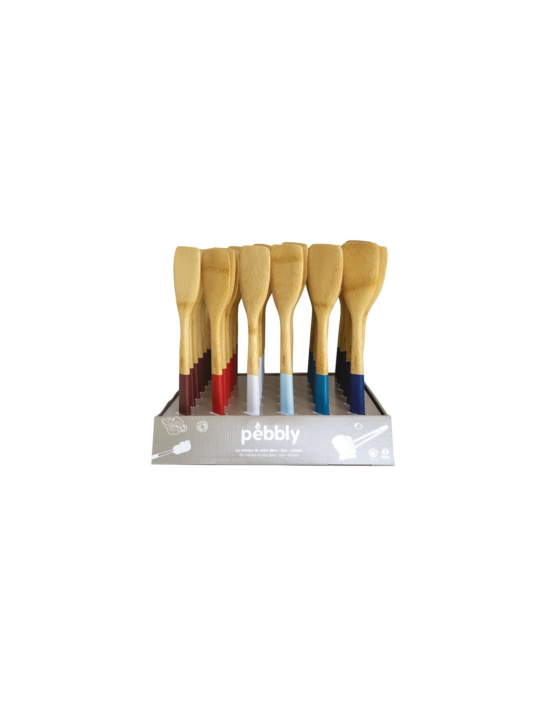 prã©sentoir de 36 pcs spatules en bambou 30 cm coloris assortis frenchy - la brigade de buyer