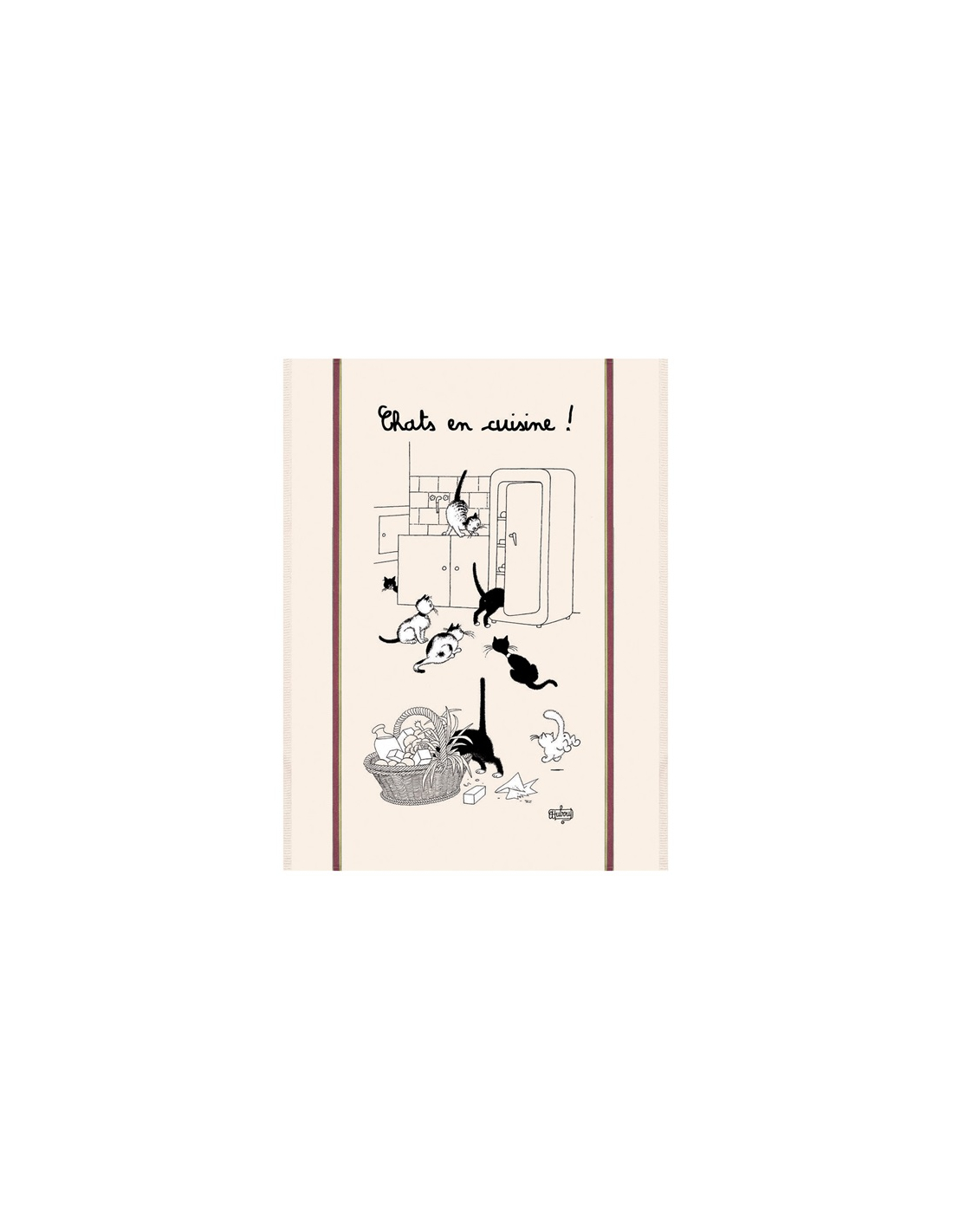 grand torchon dubout chats en cuisine ecru 60x80 - sde ld
