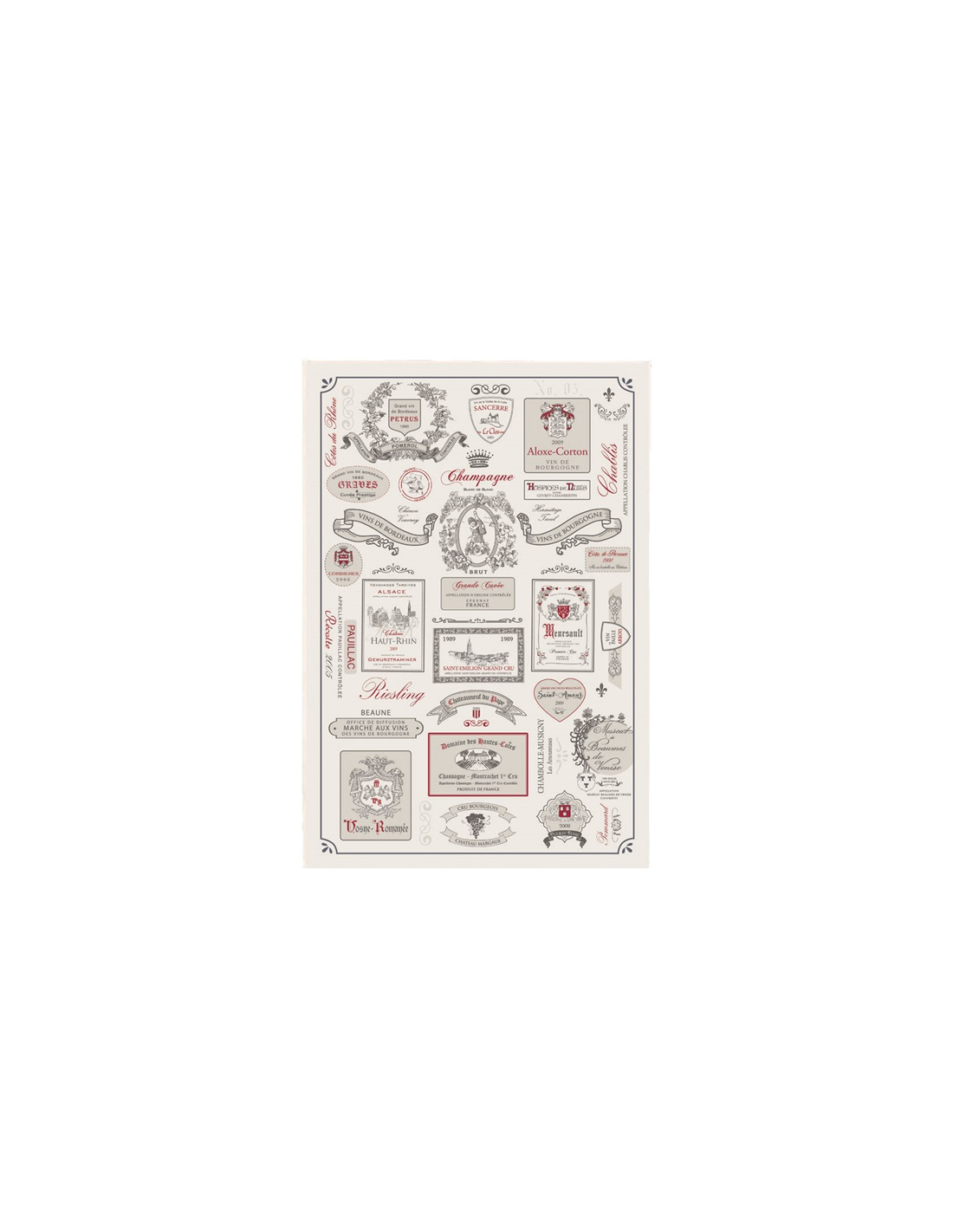 torchon etiquettes de vins ecru 48x72 - sde ld