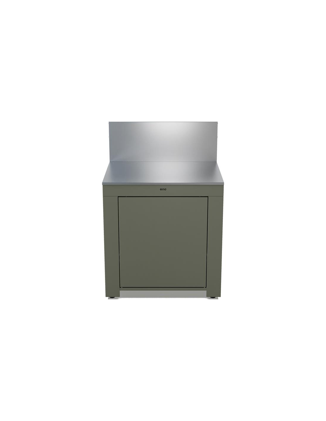 Composition pack : MOD7600, MOD760101. Module cuisine extérieure ENO PMOD7601 - Ce module MODULO 80 crée une vraie zone de préparation pour une cuisine d’extérieur propre et organisée - La structure en acier galvanisé triple couche avec peinture polyester est conçue pour rester fiable dehors, et le plan de travail avec crédence haute en inox marin recuit offre une surface robuste, facile à nettoyer, avec une finition texturée mate qui limite les marques - La porte plane sans poignée s’ouvre en push-pull et se referme en douceur, pratique quand les mains sont prises - Les 4 pieds réglables facilitent une mise à niveau stable sur terrasse ou sol irrégulier - Le rangement intégré accepte une bouteille de gaz butane ou propane de 6 à 13 kg, pour garder l’espace net - Le système de liaison des modules permet de construire une cuisine modulable et évolutive - Livré en kit, pour une installation maîtrisée.