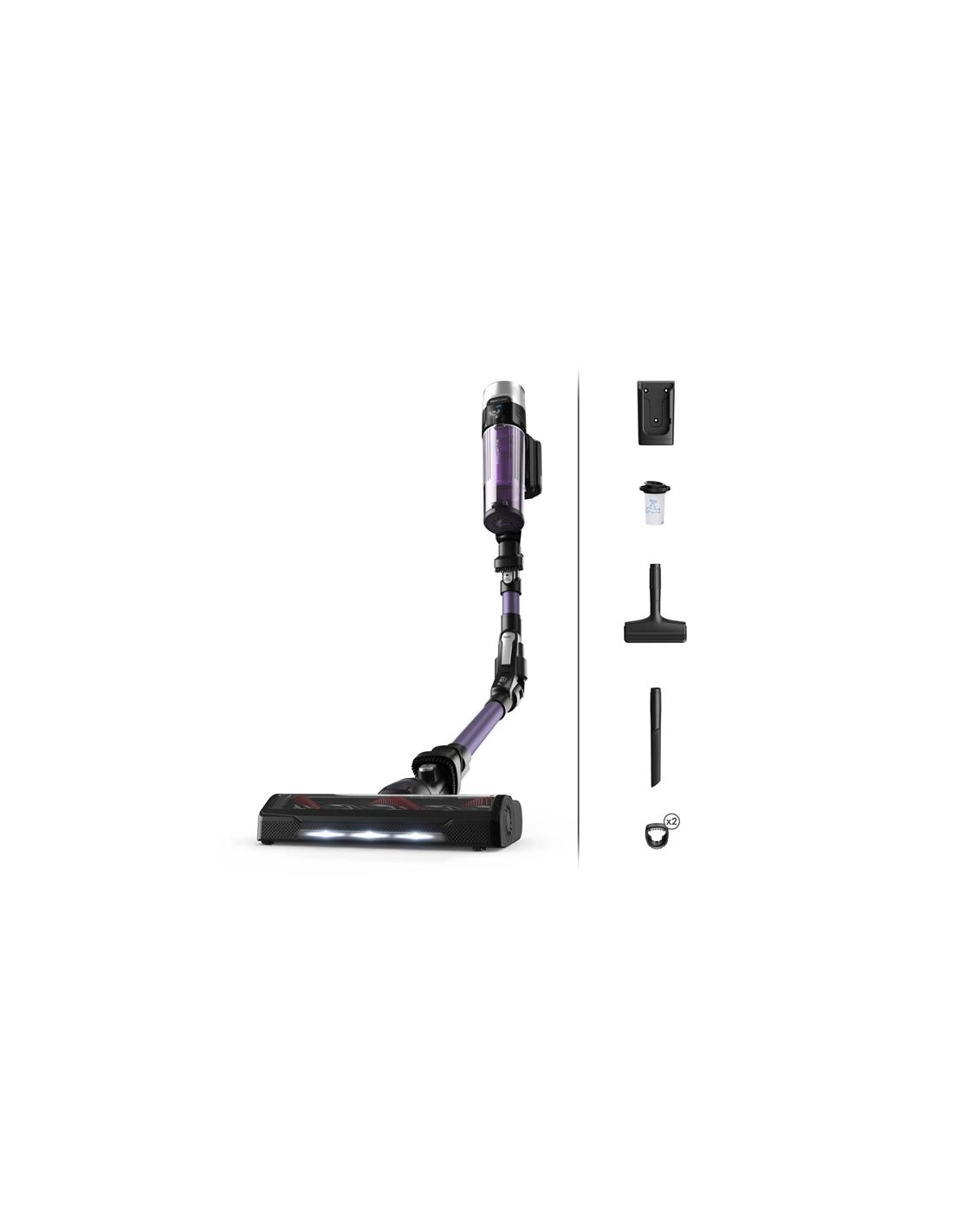 Aspirateurs balai Aspirateur balai sans fil Rowenta X-Force Flex Auto 9.60 YY5786FE- Ultra polyvalent, il combine une batterie lithium-ion 18,5 V et une puissance d’aspiration annoncée à 100 Air Watts pour garder le contrôle sur la poussière au quotidien- Selon l’usage, l’autonomie monte jusqu’à 45 min en mode aspirateur à main et environ 30 min au sol, avec une gâchette Boost pour les moments où il faut forcer- La tête Power LED Vision aide à repérer la poussière dans les zones sombres, et le tube Flex en aluminium permet d’aller sous les meubles bas sans effort- L’aspirateur ajuste automatiquement la vitesse selon le sol, avec 3 vitesses dont Boost, et limite les blocages de brosse quand la résistance devient trop élevée- Le bac à poussière amovible de 0,44 L se vide proprement, et la filtration annoncée à 99,9 % vise une meilleure hygiène- Livré avec kit allergie, suceur fente, large suceur ameublement plat, 2 brossettes multi-usages intégrées, et une base de charge murale pour tout garder rangé.