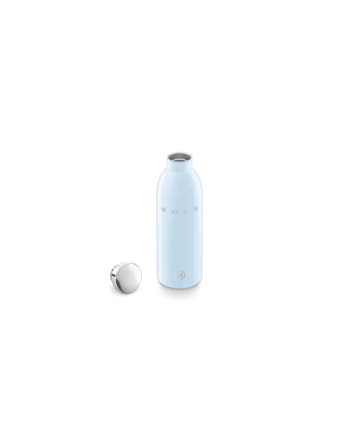 Bouteille isotherme SMEG WBF01PB - Avec sa capacité de 500 ml et sa finition bleu azur brillante, cette bouteille associe le style rétro des années 50 et la technologie italienne en partenariat avec 24Bottles® - Sa double paroi en acier inoxydable 18/8 assure une isolation performante, gardant vos boissons chaudes pendant 12 heures et froides pendant 24 heures - Sa conception sans BPA, BPS, PES, PFAS et phtalates garantit une utilisation saine et respectueuse de l’environnement - Son bouchon hermétique en acier inoxydable muni d’un joint silicone orange maintient l’étanchéité et la température des liquides - Sa couleur bleu azur et son design compact facilitent le transport et s’intègrent à tous les styles de vie - Pratique, elle ne passe pas au lave-vaisselle ni au micro-ondes pour préserver ses performances thermiques et est conçue pour un lavage manuel rapide - Un accessoire tendance et durable pour rester hydraté toute la journée.