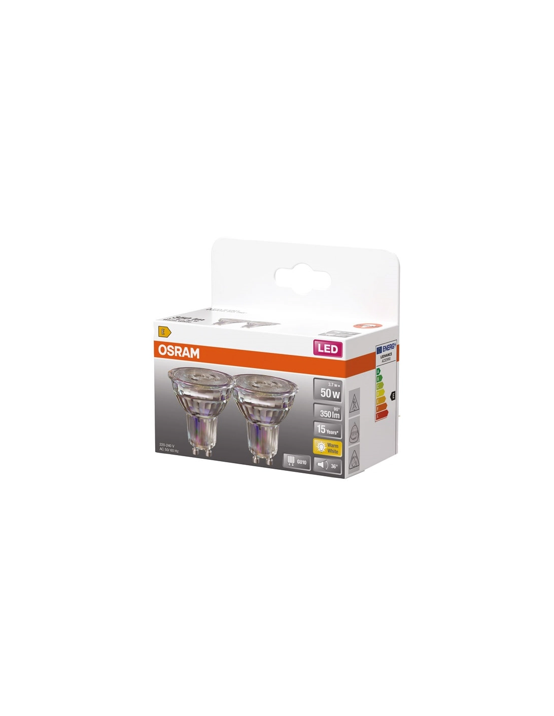 led spot par16 36 verre gu10 4.3w 350lm chaud boite de 2 - ledvance gp