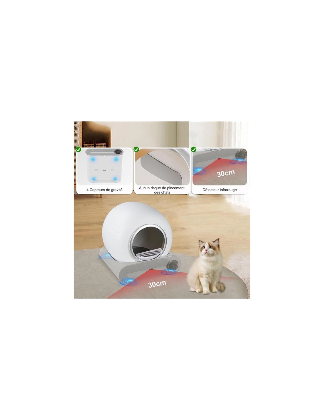 litiã¨re robot autonettoyante connectã©e - autoclean 360â° - anti odeurs - autonomie 20 j - multi chats - blanc - eziclean