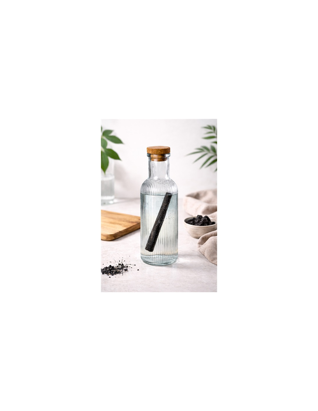 bouteille avec charbon actif binchotan - la voie de la terre