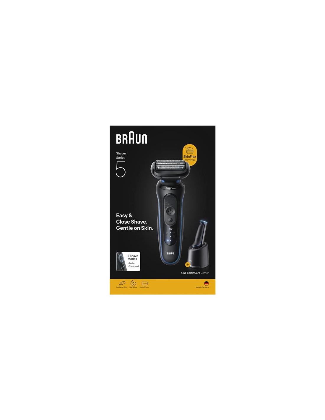 Rasoirs masculins Rasoir électrique Braun Series 5 52-B7000cc - Conçu pour offrir un rasage de près facile et doux pour la peau, il est équipé de 3 lames flexibles qui s’adaptent aux contours du visage pour un contact optimal - La technologie SensoAdapt analyse la densité de la barbe et ajuste automatiquement la puissance du moteur afin d’assurer efficacité et confort à chaque passage - Les 2 modes de rasage Turbo et Standard permettent de choisir entre rapidité maximale ou équilibre idéal entre performance et douceur - 100 % étanche, il s’utilise sur peau sèche ou mouillée, avec mousse ou gel, et même sous la douche - Sa batterie Li-Ion offre jusqu’à 50 minutes d’autonomie et une charge rapide de 5 minutes pour un rasage complet de dernière minute - La station SmartCare 4-en-1 nettoie, lubrifie, recharge et optimise les performances du rasoir pour un appareil comme neuf jour après jour - Fabriqué en Allemagne, il est conçu pour durer.
