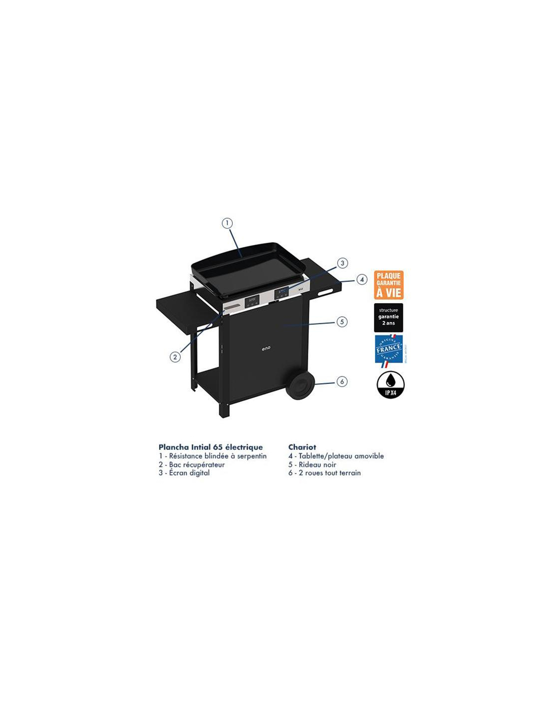 combo initial 65 plancha ã‰lectrique sur chariot-inox - eno pem