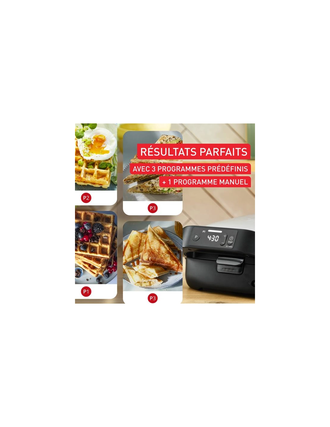 gaufrier/croque multifonction 700 w - 4 plaques amovibles - 3 prog + manuel - thermostat regl - indic prechauf/cuisson - - gpe s