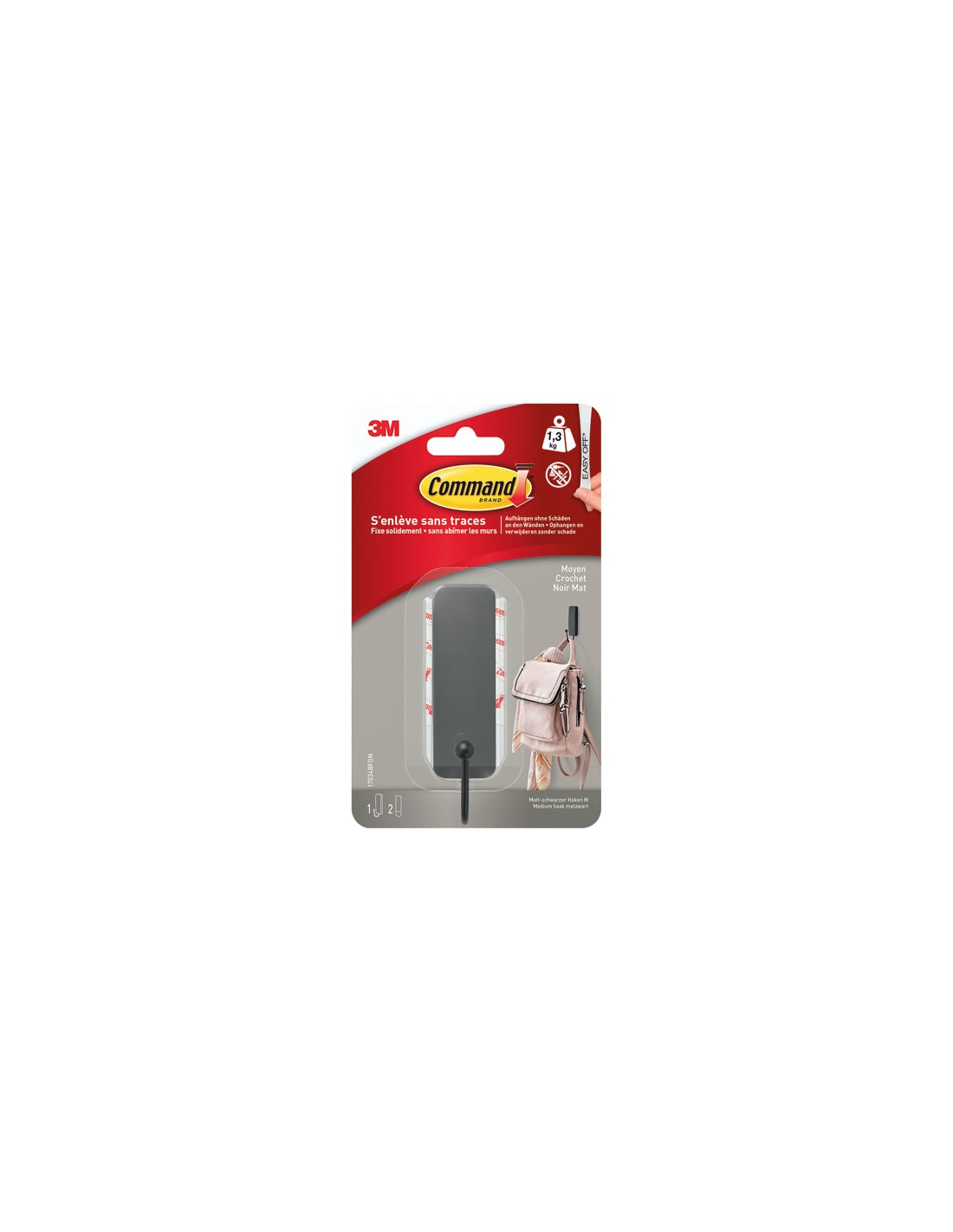 crochet adhã©sif mã©tal noir moyen - gpi 3m bricolage et batiment