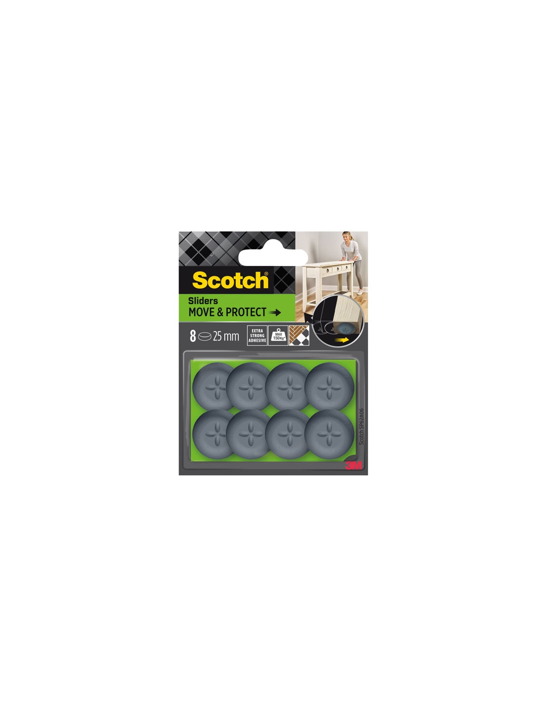 patin glisseur adhã©sif alveole rond gris 㘠25 mm blister x 8 - gpi 3m bricolage et batiment