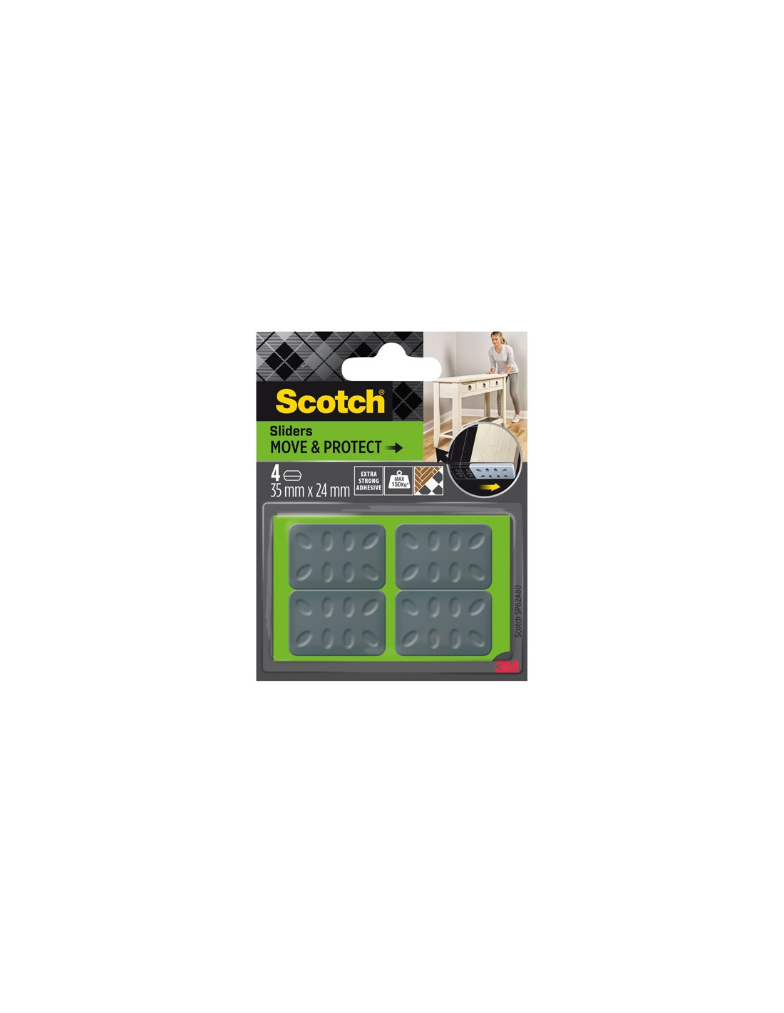 patin glisseur adhã©sif alveole carre gris 35x 24 mm lot de 4 - gpi 3m bricolage et batiment