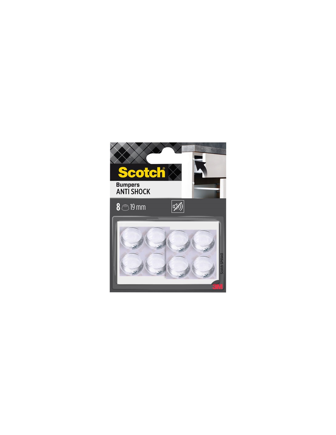 Embouts de chaise & patins La butée adhésive patin antichoc anti-bruit diamètre 19 mm coloris transparent lot de 8 de chez 3M est une pastille de protection en élastomère élastique permanent de qualité pourvues d'un adhésif extra-fort. Ils sont conçus pour protéger les tiroirs et les portes d'armoires contre les claquements, les petits appareils des rayures, du glissements et des vibrations de tout ce qui fait du bruit. Ils ne laissent ni rayure ni tache sur la surface, ne se fissurent pas et ne durcissent pas : une solution idéale sur le long terme. Ils sont proposés dans différentes couleurs et tailles. Amortissez les chocs grâce au pouvoir silencieux des butoirs anti-chocs adhésifs Scotch®. Ces butoirs discrets sont conçus pour réduire les impacts et absorber le bruit. Ils sont composés d'un élastomère élastique permanent de haute qualité et d'un adhésif extra-fort. La solution idéale pour empêcher les tiroirs et les portes d'armoires de claquer et les petits appareils, de rayer les surfaces, glisser et vibrer. Ils ne laissent ni rayure ni tache sur la surface, ne se fissurent pas et ne durcissent pas. Grâce à ces propriétés, les butoirs sont la solution idéale pour protéger du bruit, des vibrations et des chocs sur le long terme. Ils sont proposés dans différentes couleurs et tailles.