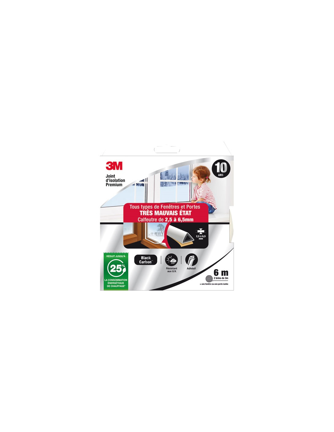 joint d'isolation porte et fenetre blanc 2.5 a 6.5 mm 6 m - gpi 3m bricolage et batiment