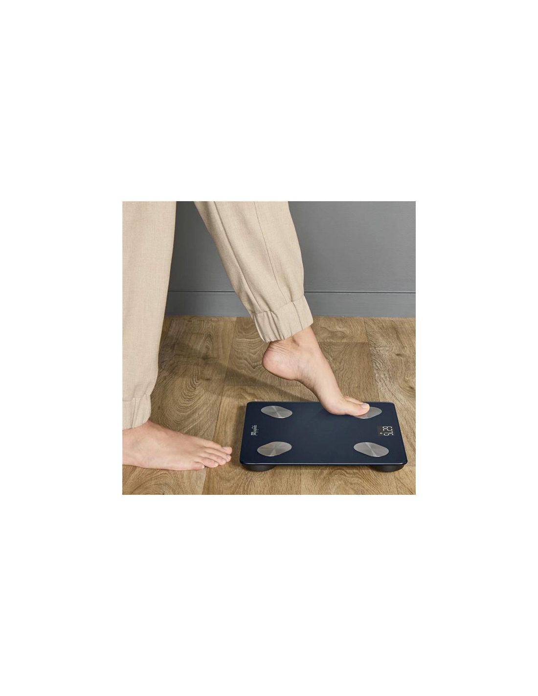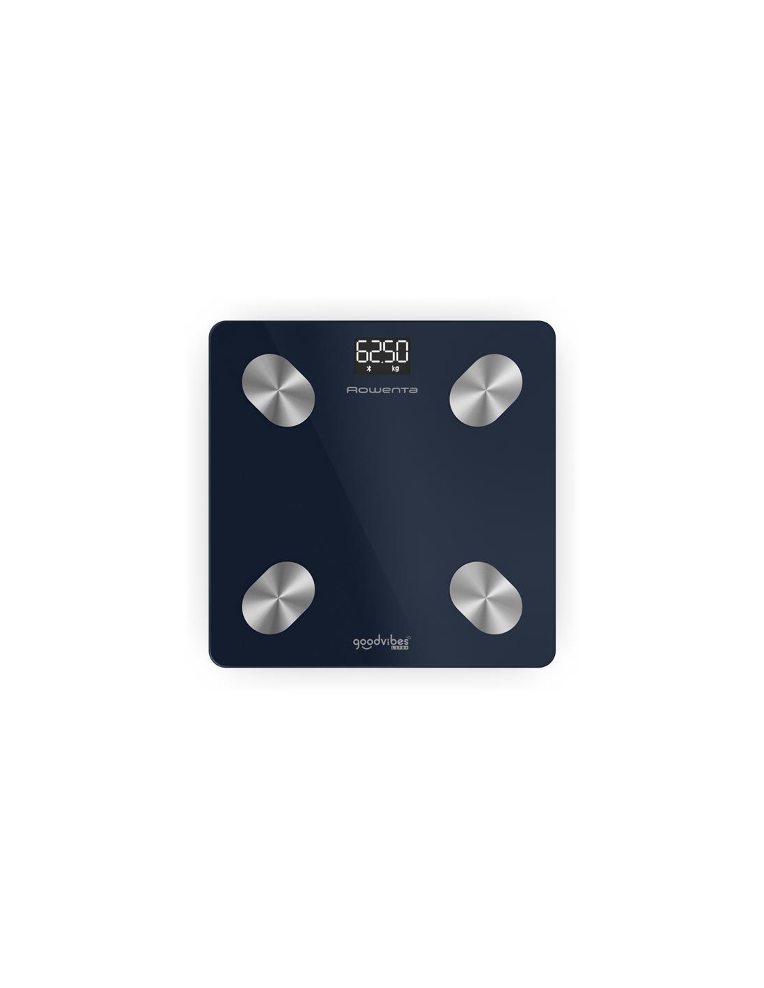 Pèse-personne Rowenta Goodvibes Life + 2.0, Pèse-personne connecté, Application intuitive, 15 indicateurs, BR9720F0 - Plus qu'un simple suivi du poids, le pèse-personne connecté Goodvibes Life + vous aide à mieux comprendre votre corps ! Grâce à l'application Goodvibes intuitive, vous accédez à 15 indicateurs corporels pour suivre l'évolution de votre masse corporelle. Suivez votre poids, votre indice de masse corporelle, la masse musculaire, la graisse viscérale et bien plus encore. Ce modèle offre une capacité de 180 kg et une précision de 50 g jusqu'à 100 kg, puis de 100 g au-delà , avec un nombre illimité d'utilisateurs, idéal pour toute la famille. Son design élégant avec une plate-forme en verre trempé et un rétroéclairage blanc sublimera votre intérieur. Le pèse-personne est également équipé de quatre capteurs en acier inoxydable pour une mesure fiable et précise. Synchronisez vos données avec Google Fit, Apple Health ou Fitbit pour un suivi complet de votre bien-être.