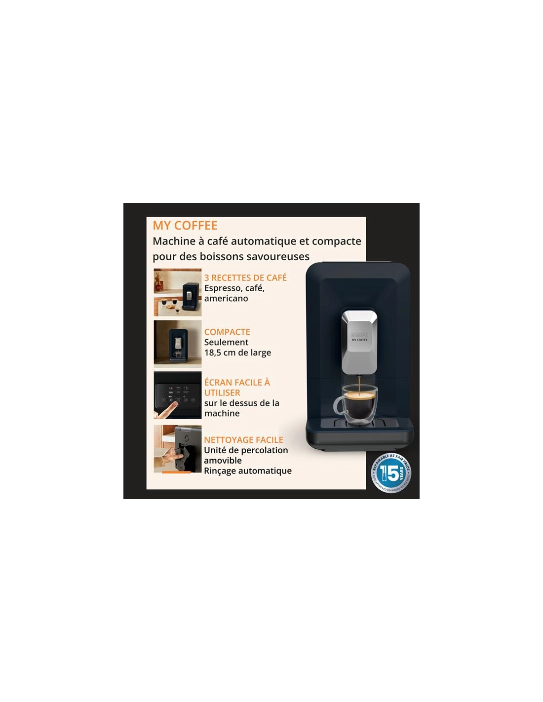 expresso broyeur - 3 cafã©s - 15 bars - 1,5 l - tactile - compact l 18,5 cm - coloris bleu k - gpe seb france - krups