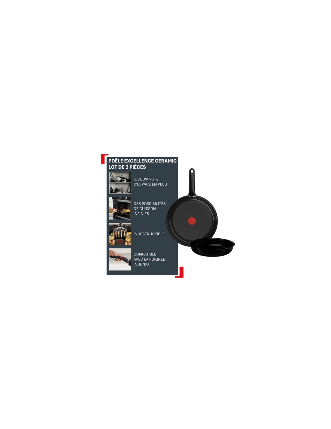 ingenio excellence ceramic set de 3 pces - gpe seb france tefal menage
