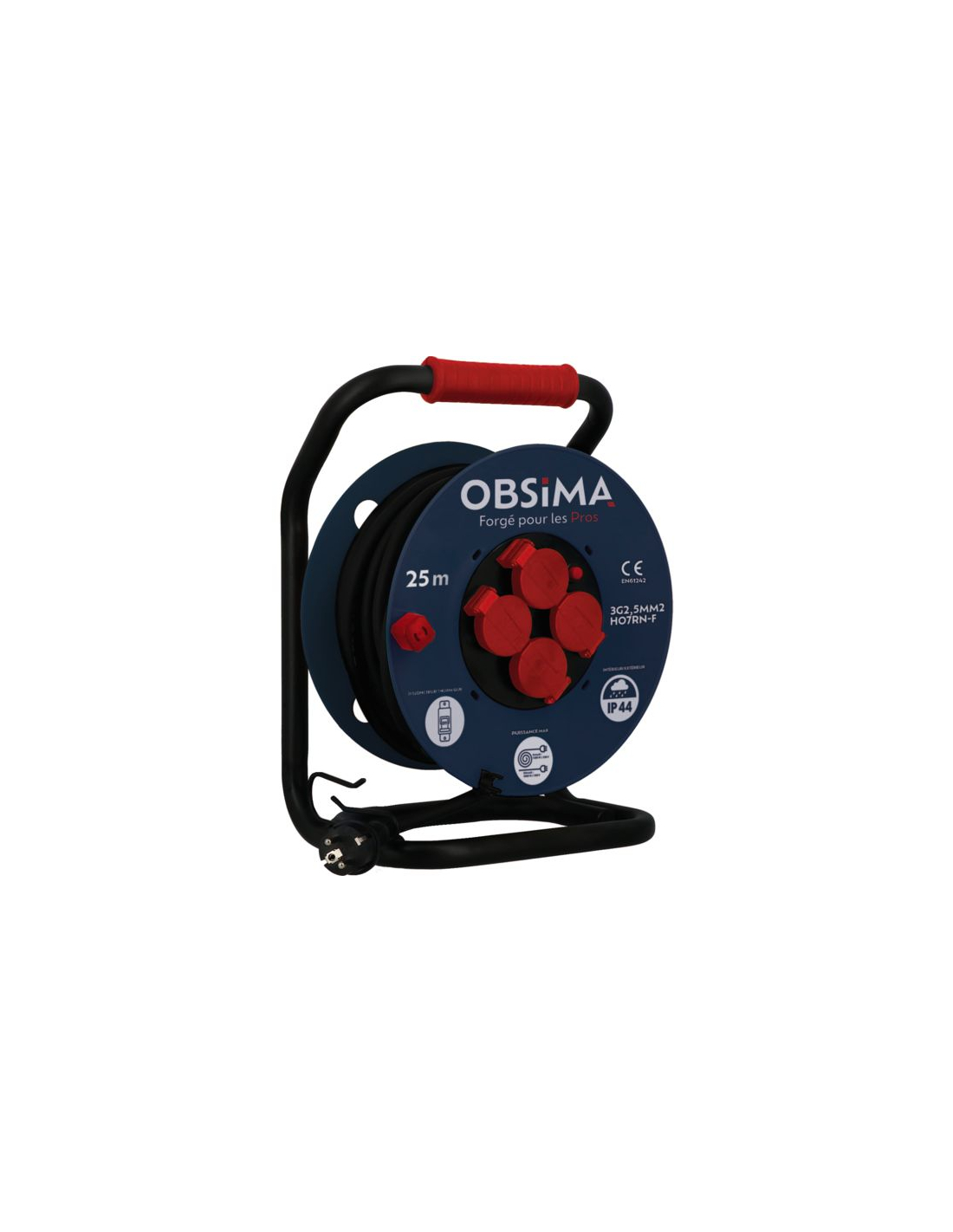 enrouleur de câble h07rn-f 40m-3g2,5mm² - ip44