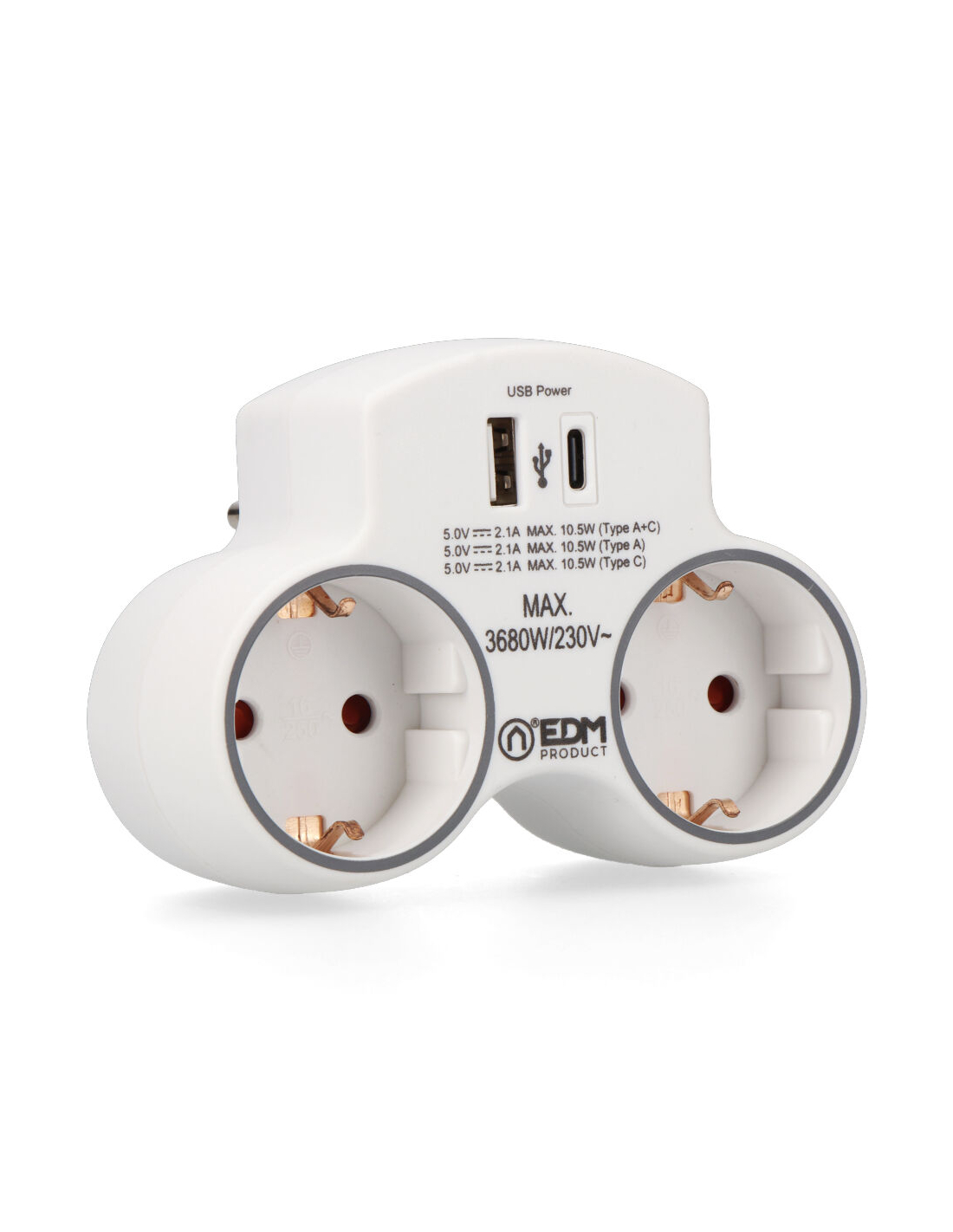 adaptateur avec 2 prises 2p+t schuko et 2 ports usb (a+c), blanc