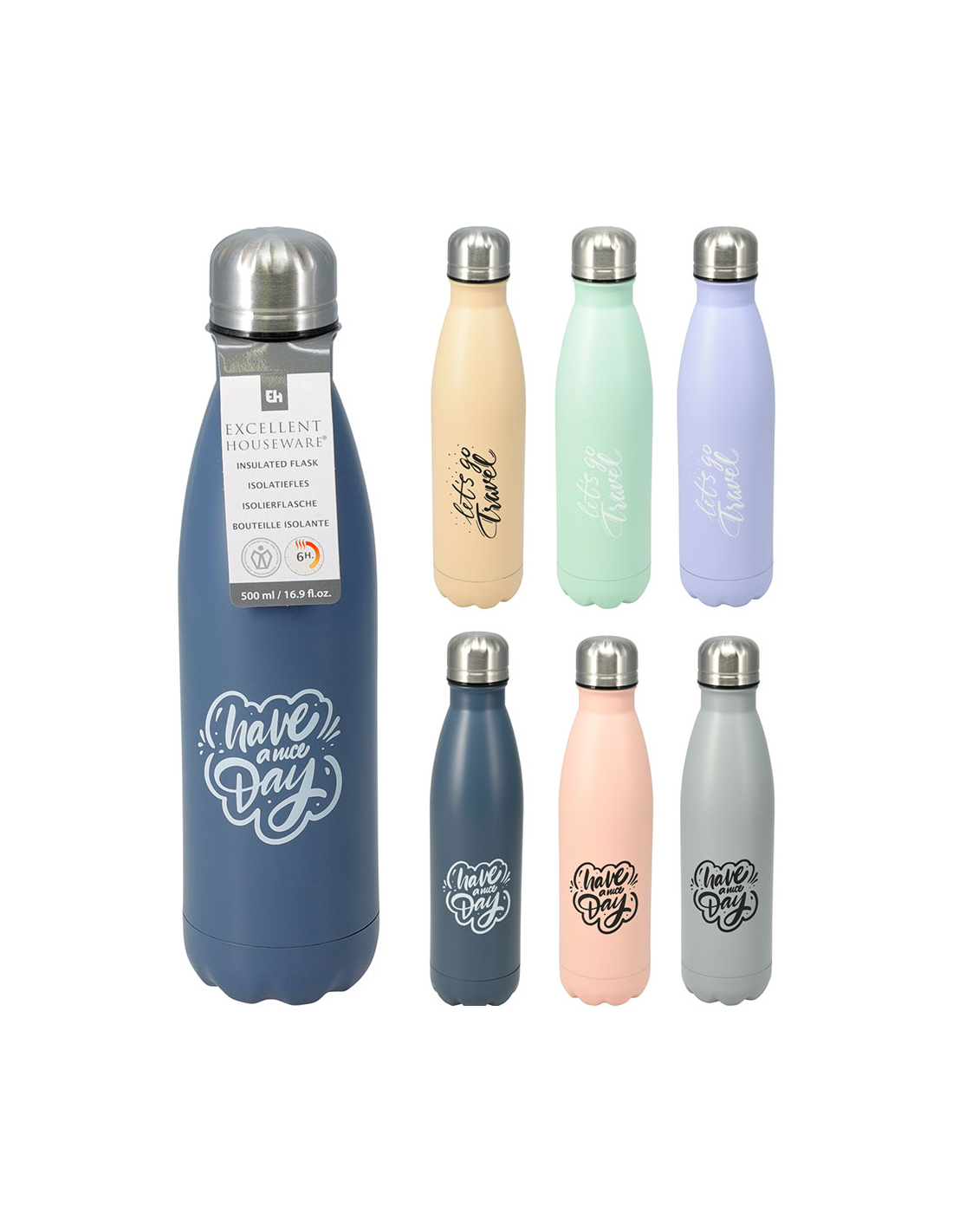 bouteille isotherme en acier inoxydable de couleurs et modèles assortis 500 ml