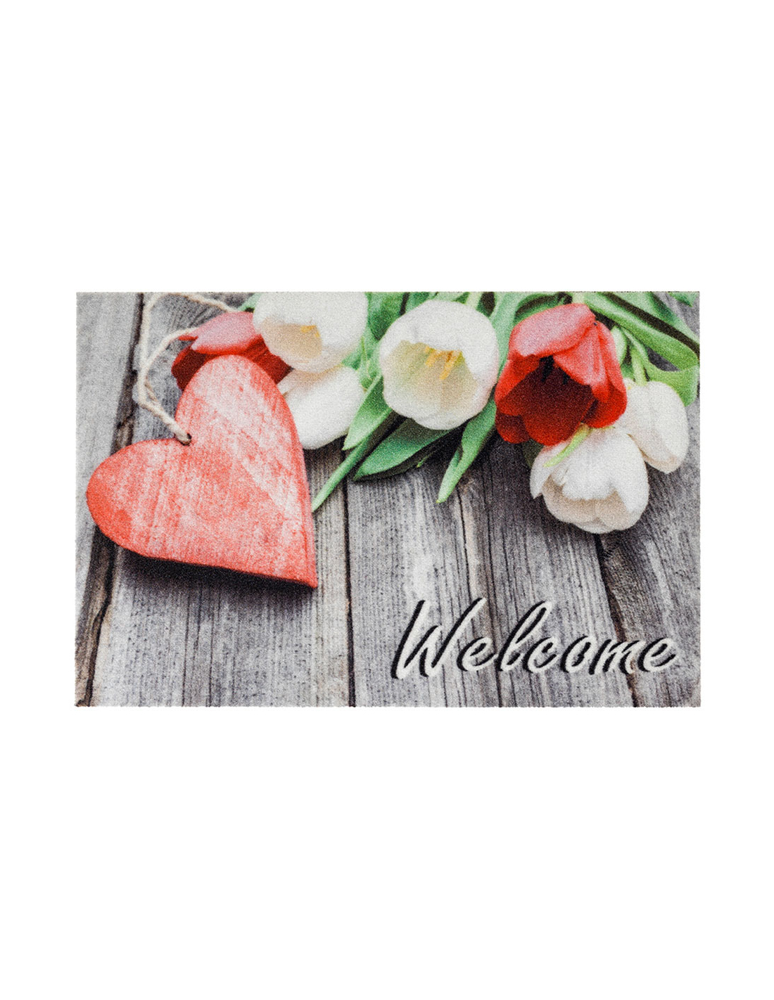 paillasson d'intérieur, deco print, 40 x 60 cm, 100% polyamide, fleurs coeur welcome