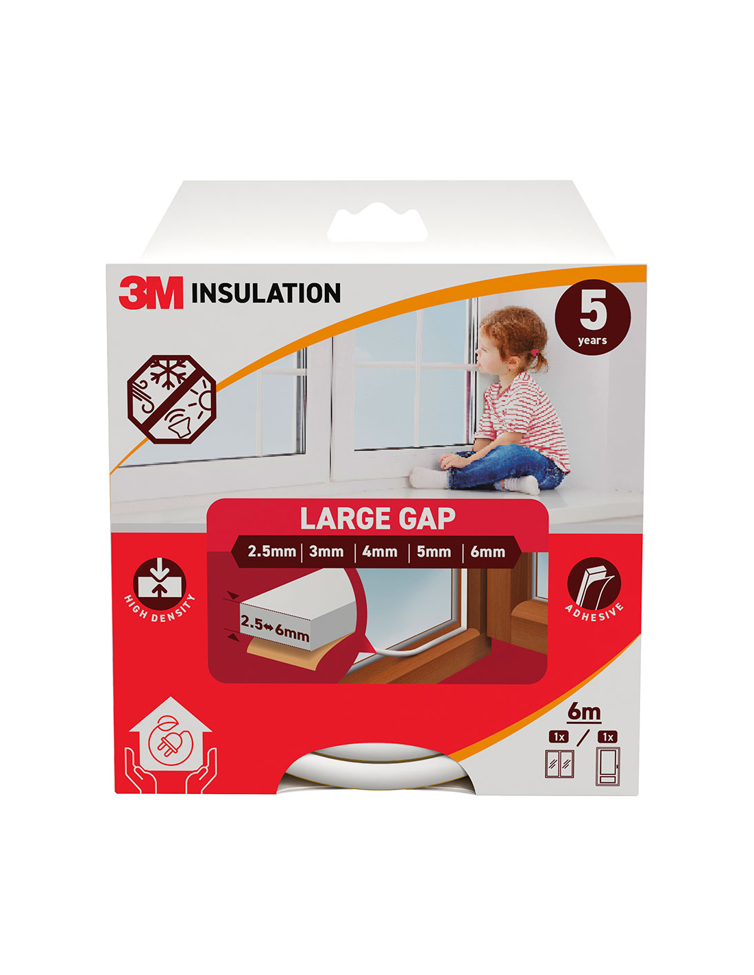 joint d'isolation classique pour grands espaces 2,5 - 6 mm, blanc, 6 m