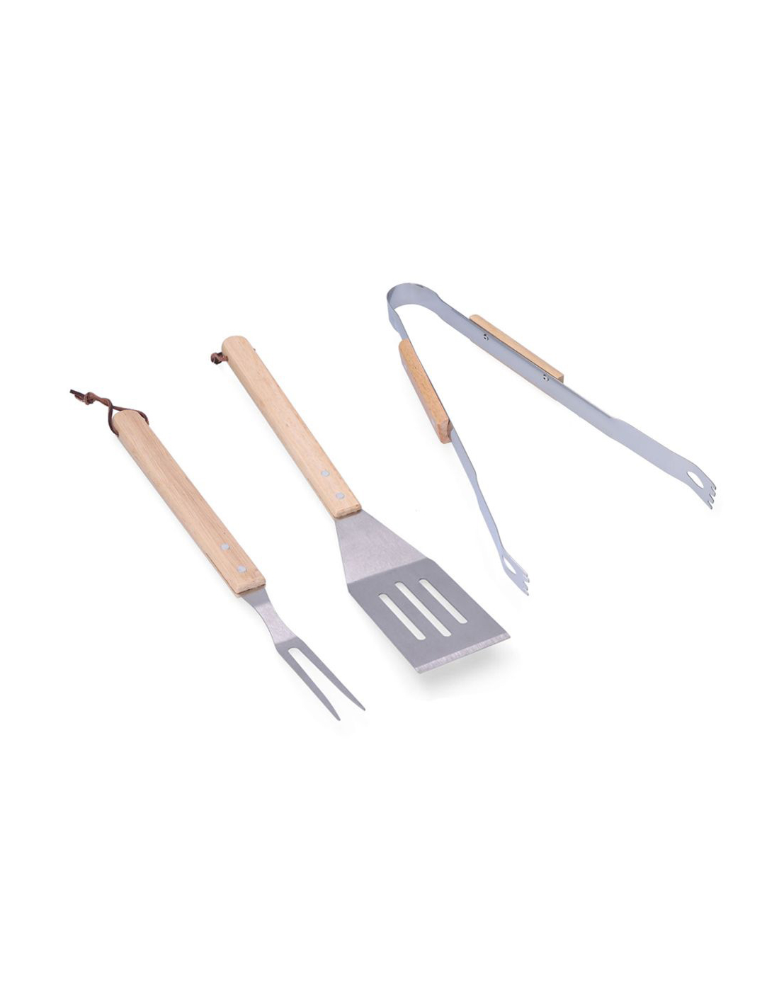 lot de 3 ustensiles de barbecue en chêne/acier inoxydable
