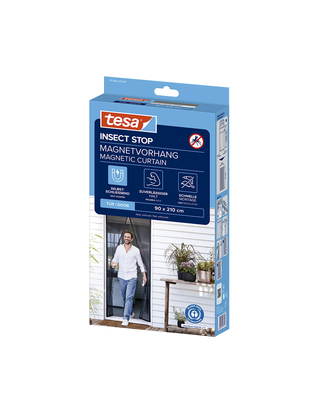 moustiquaire rideau magnétique à fermeture automatique, anthracite, 90 x 210 cm