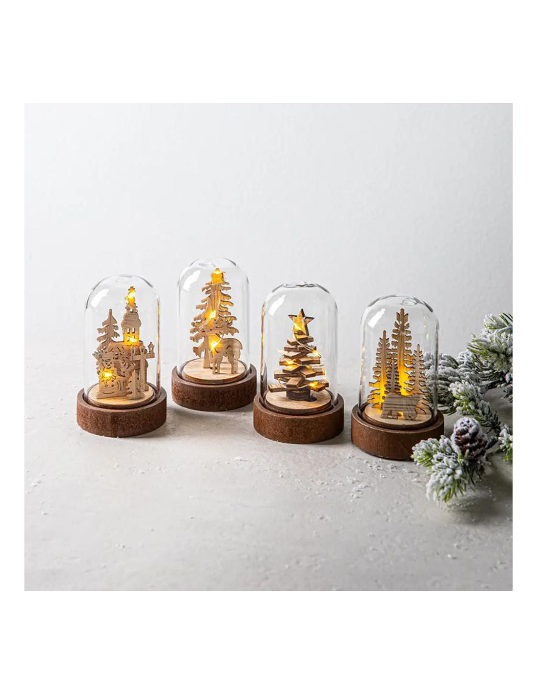 figurine décorative de noël en bois avec lumière led, différents modèles