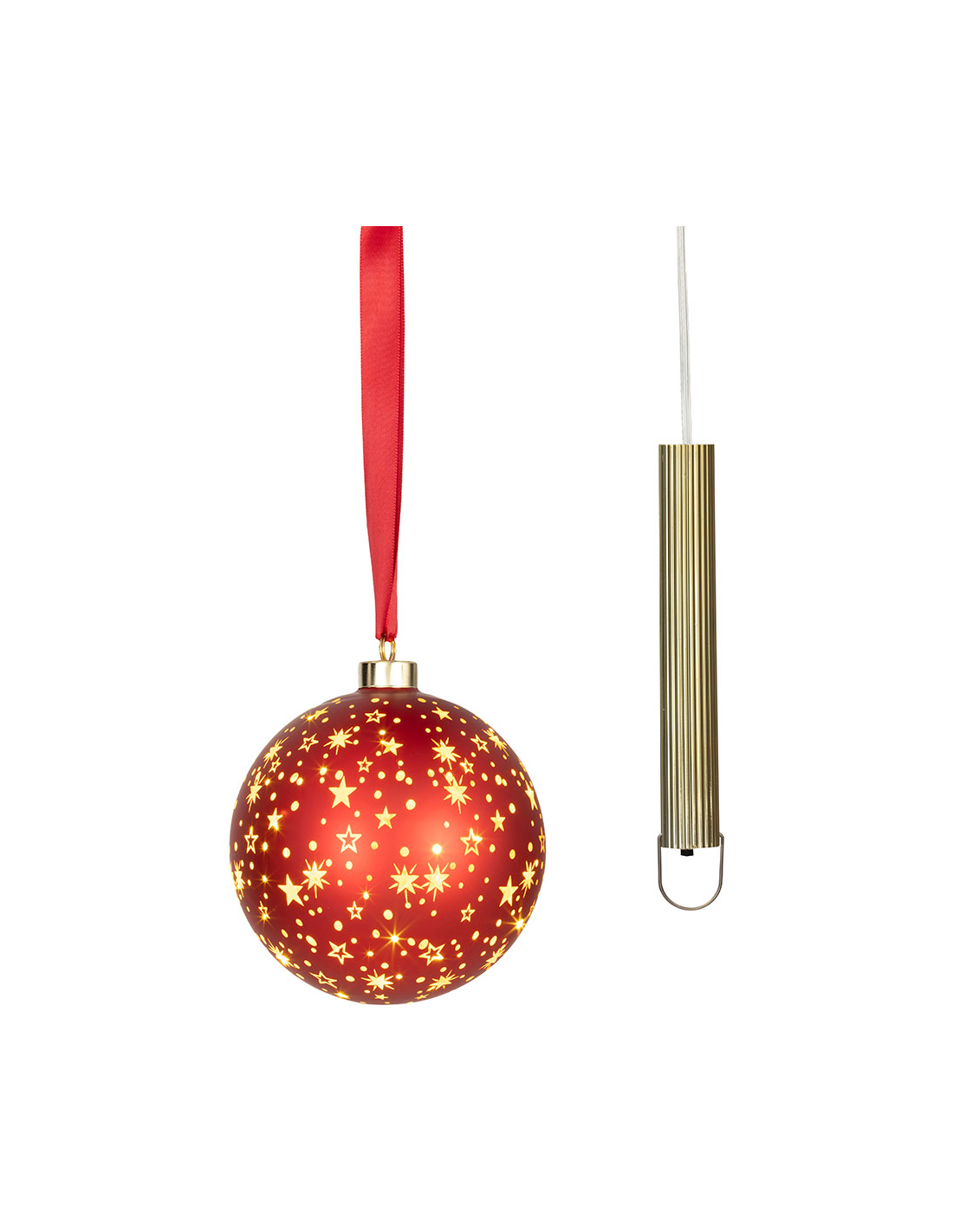 boule led micro, lumière chaude, pour usage intérieur, fonctionne sur piles, ø14 cm, rouge avec fil argenté
