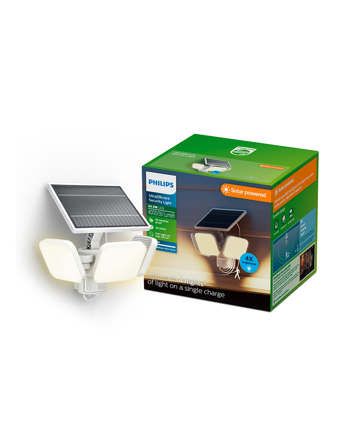 lampe de sécurité solaire zyren, blanche, 24,5 w, 4000/50 lm, 3000 k