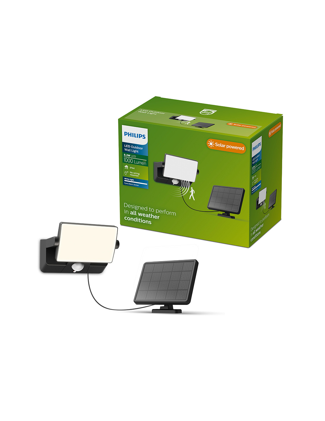 lampe de sécurité solaire led fyns noire 8,2 w, 1000/50 lm, 3000 k