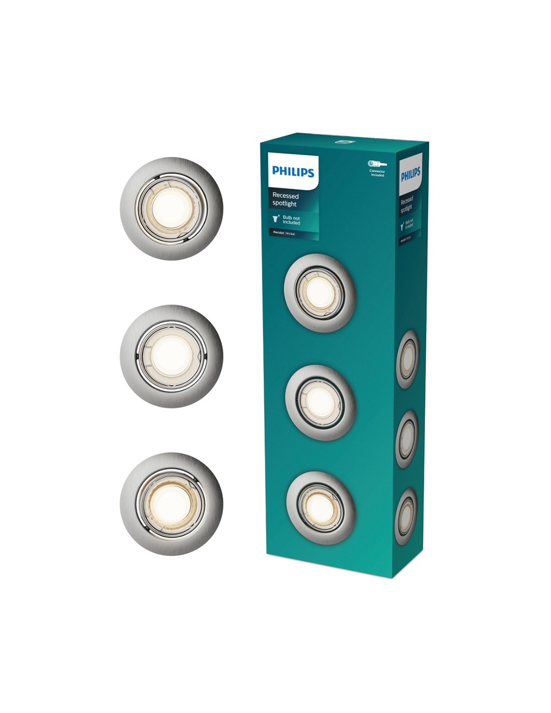 spot encastrable rond en métal, modèle peridot, orientable, gu10, nickel, ø9 cm, 3 unités