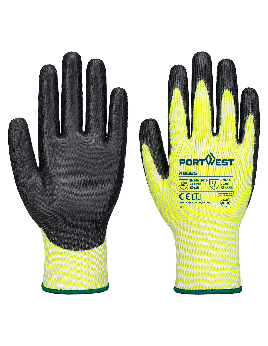 gant coupure d13 pu essential (12 paires) - taille xxl - jaune/noir - portwest