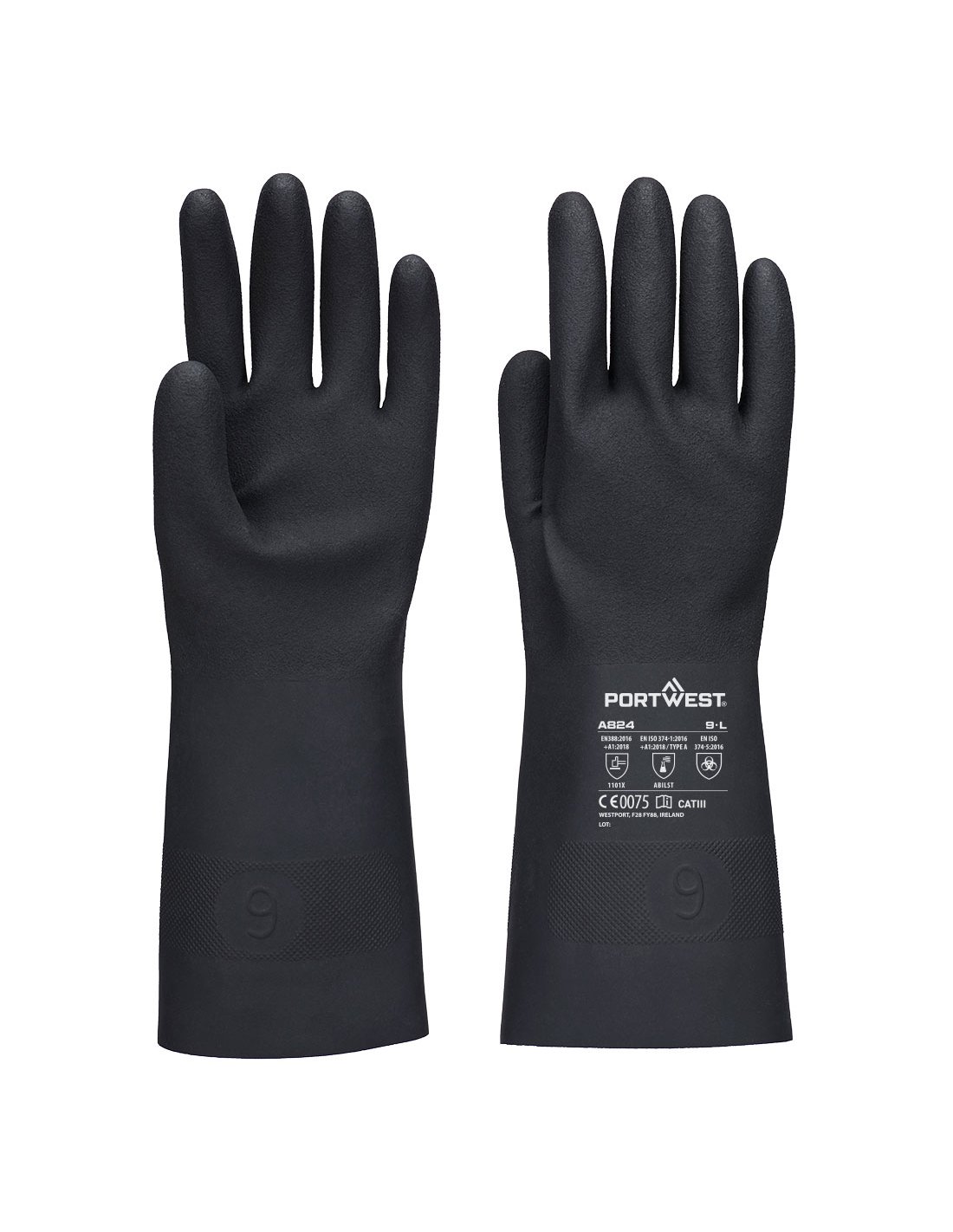gant chem tout enduit butyl 350 - taille m - noir - portwest