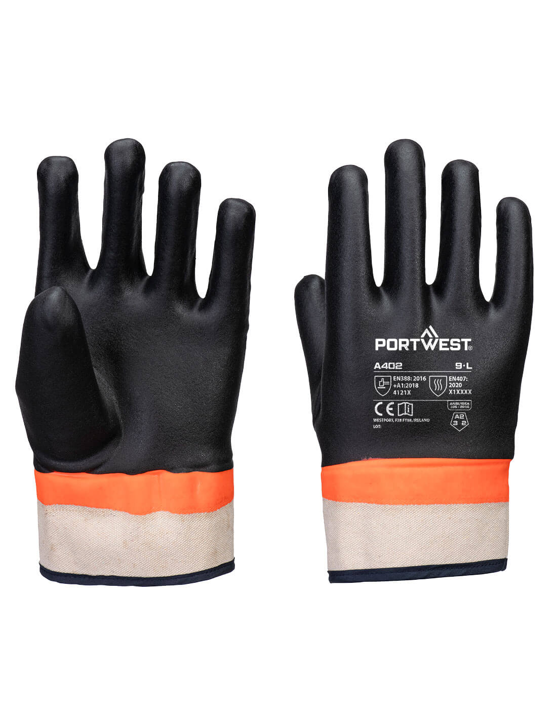 grip pvc double-dipped sandy - taille xxxl - noir/orange - portwest
