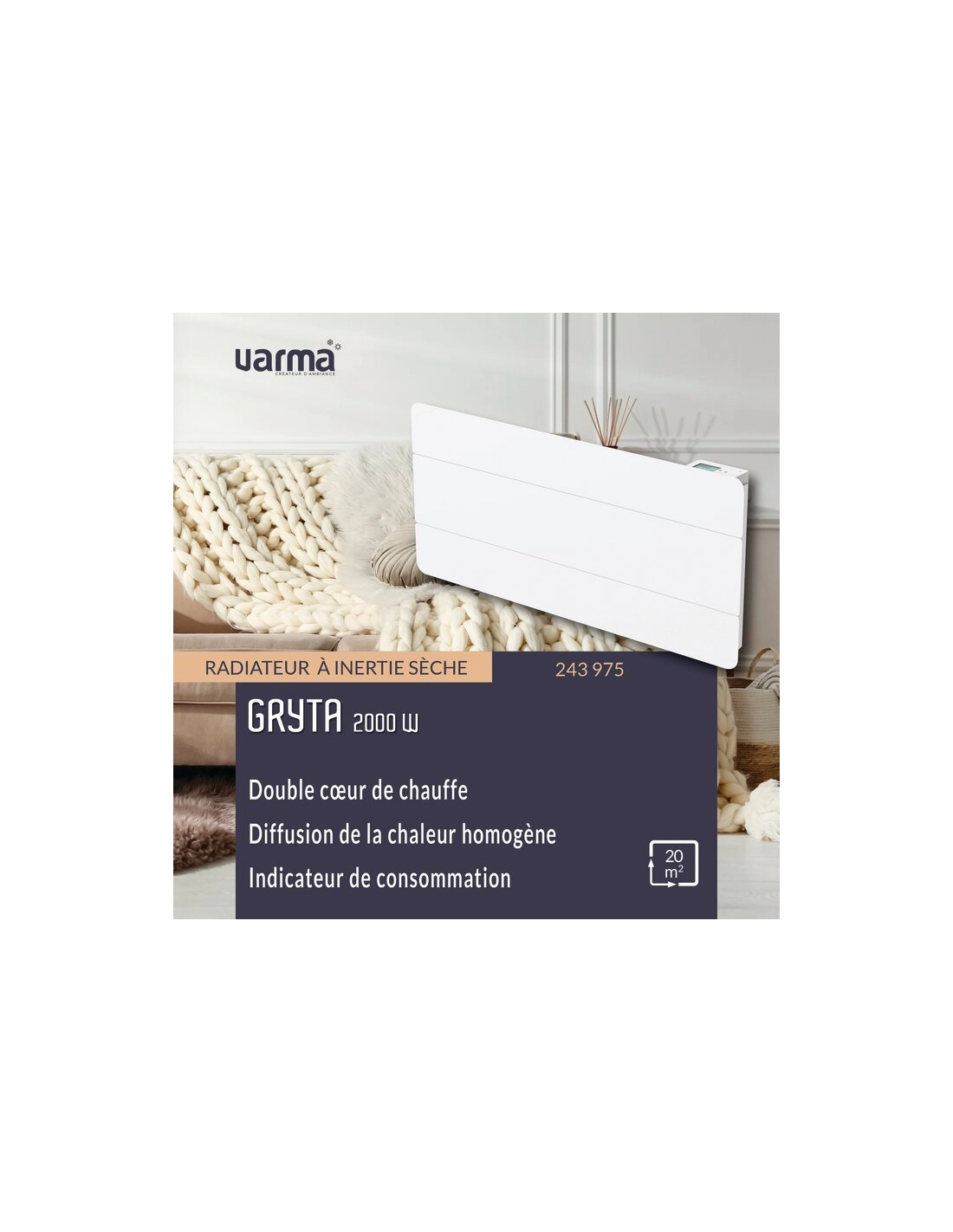 Radiateur bloc aluminium - VARMA - Gryta - Blanc 1000 watts
