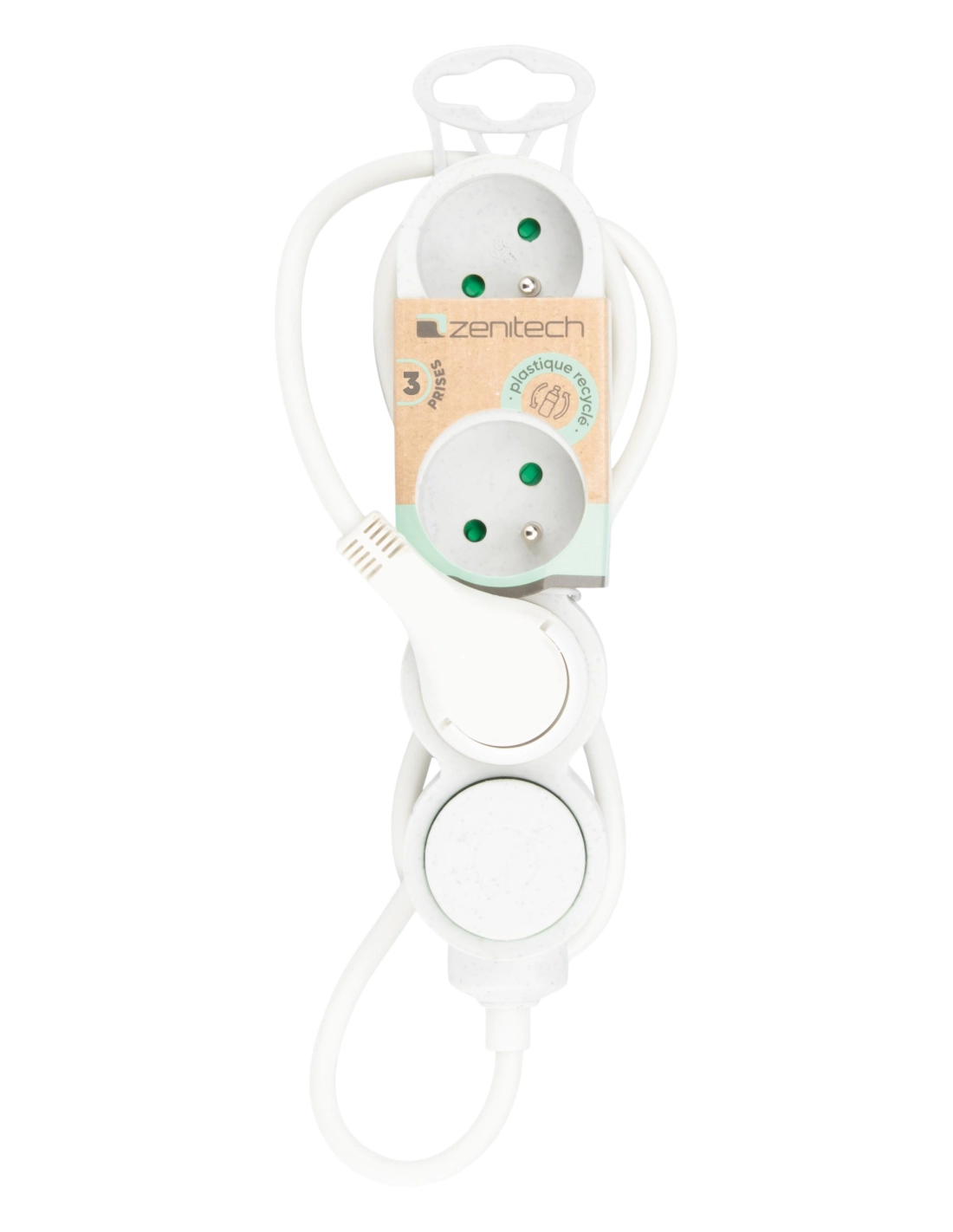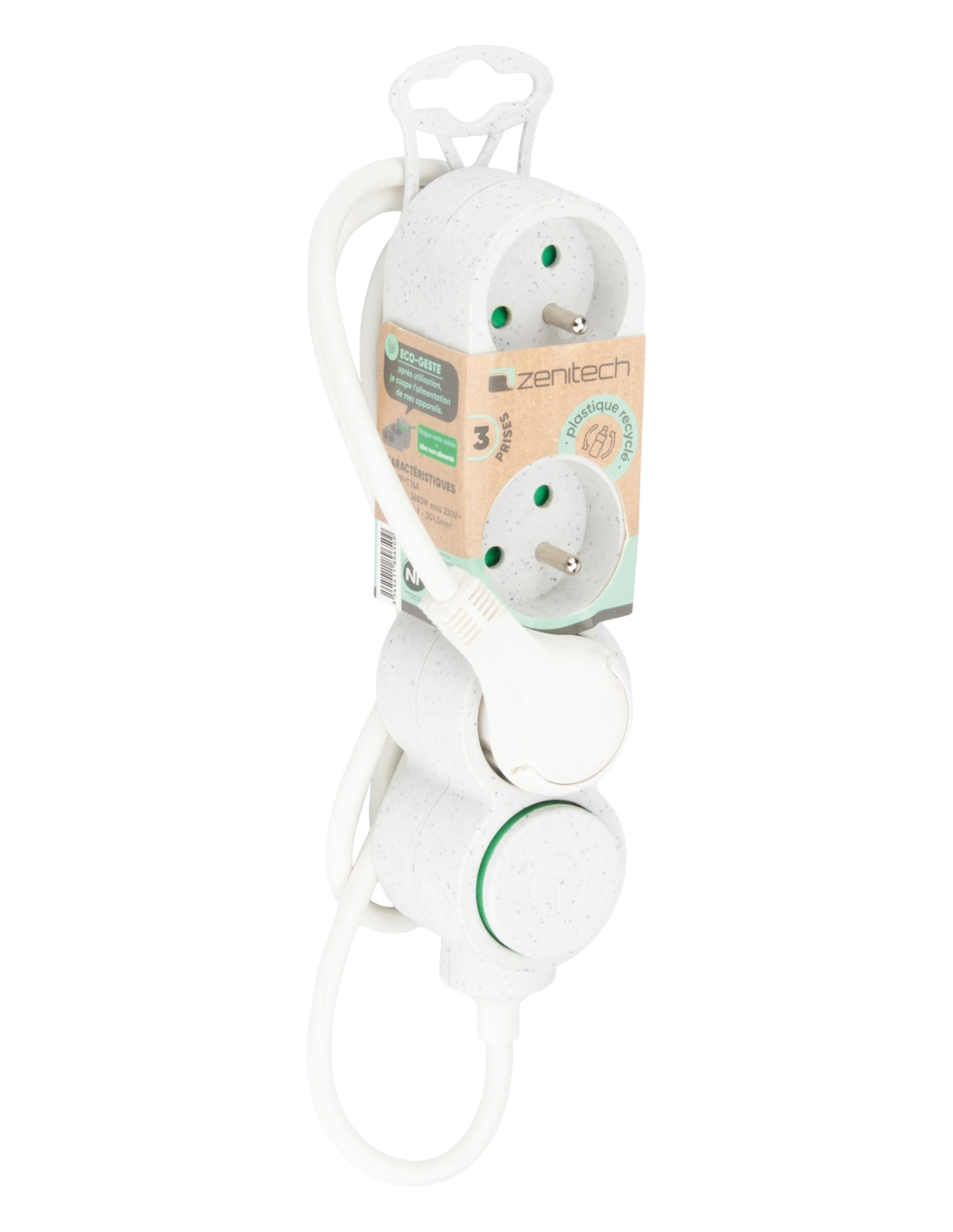 Bloc 3 prises 16A + inter blanc moucheté 80% de matière recyclée - ZENITECH