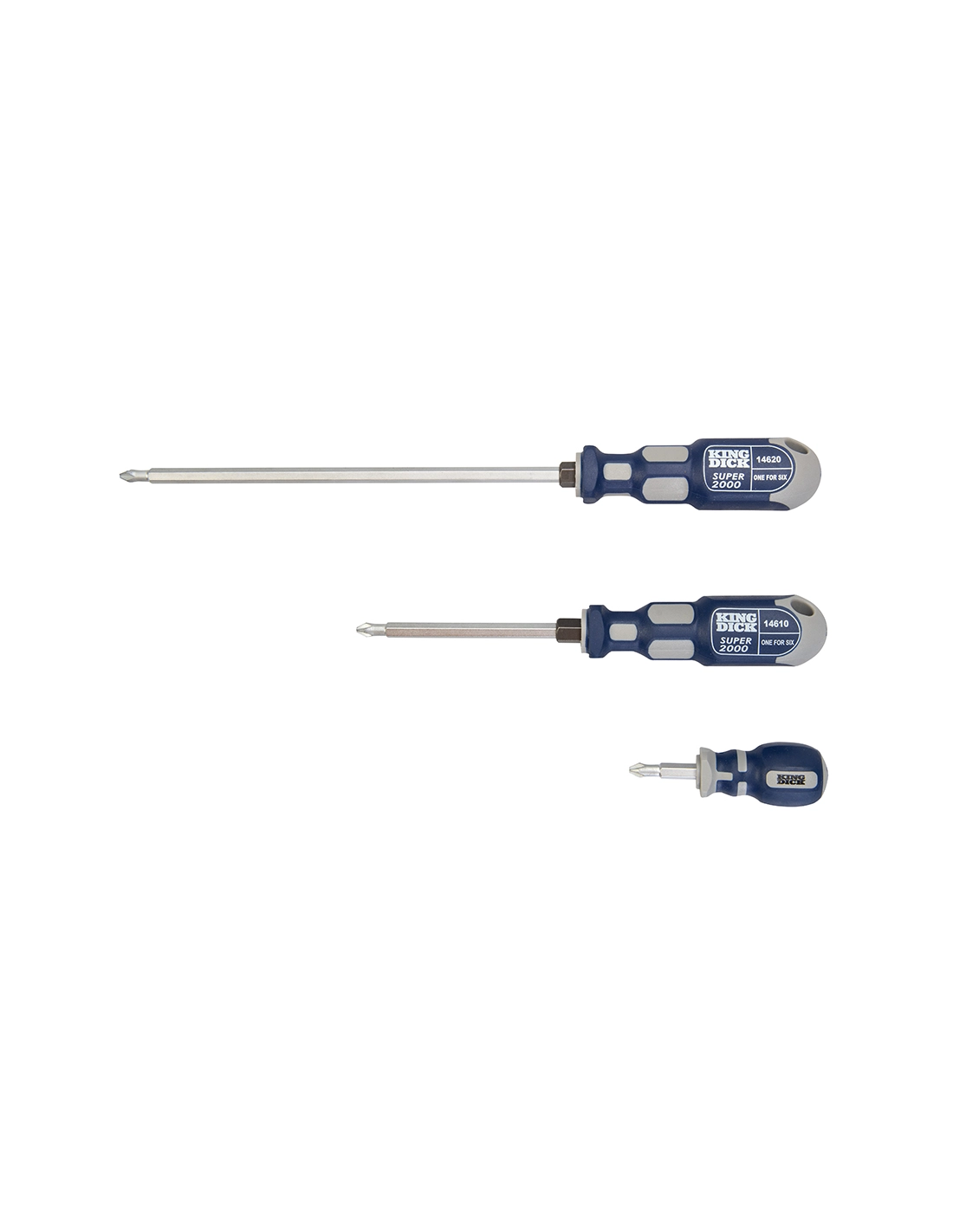 tournevis 6-en-1, coffret 3 pcs - pz1, pz2, pz3 et ph1, ph2, ph3 - king dick