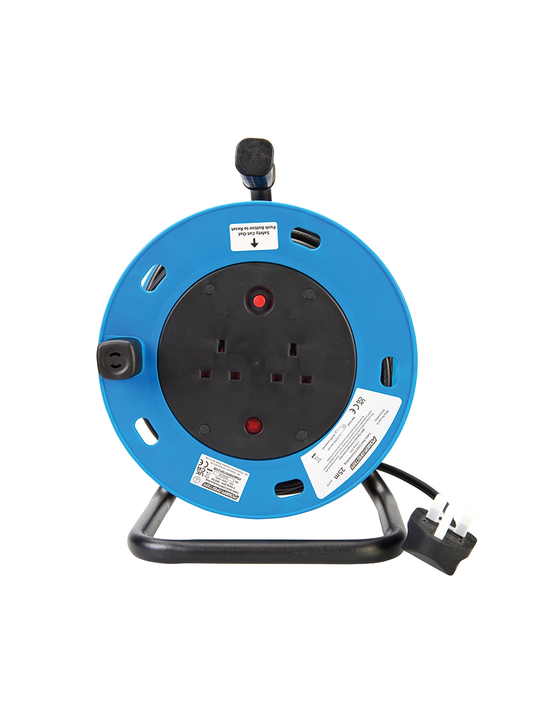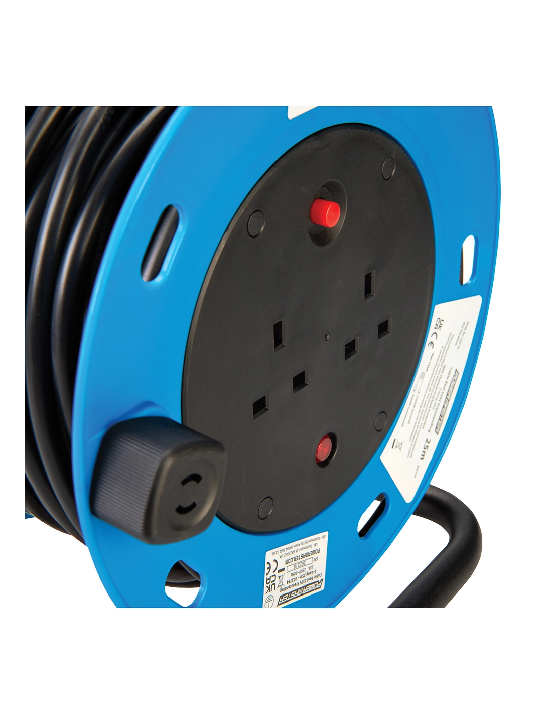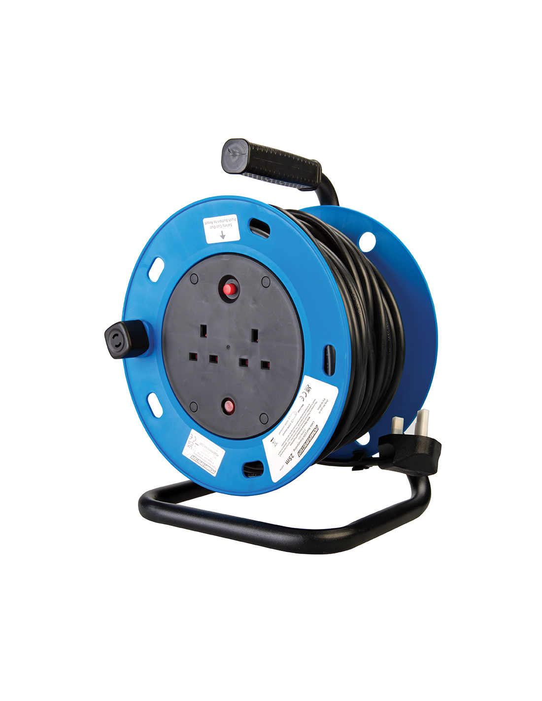 enrouleur de câble électrique sur pied, 13 a, 230 v - 2 prises, 25 m - powermaster